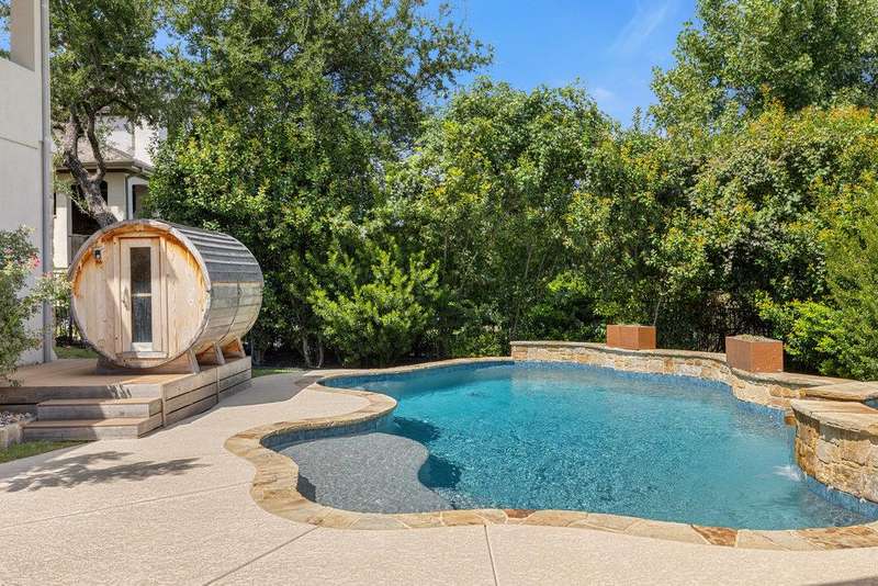 Backed by a greenbelt easement, the property offers exceptional privacy while still being part of Rough Hollow's award-winning community, with access to pools, fitness, trails, tennis, and the Yacht Club & Marina.