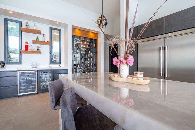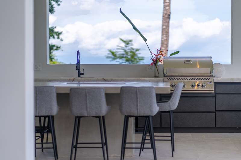 * The chef’s kitchen flows into expansive indoor-outdoor living spaces, ideal for alfresco dining or sunset cocktails.