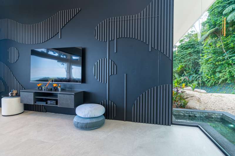 * Earth anchors the home in lush tropical gardens and ancient trees that whisper with the wind.