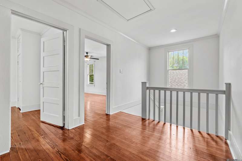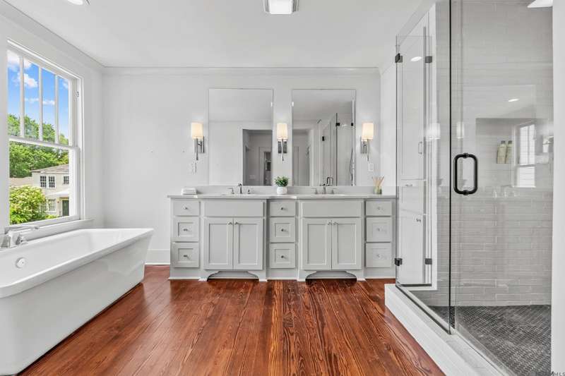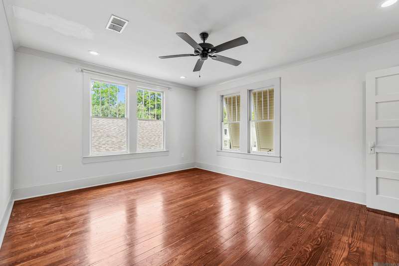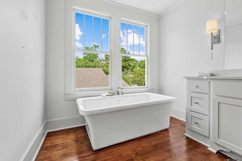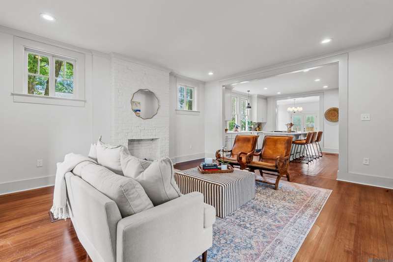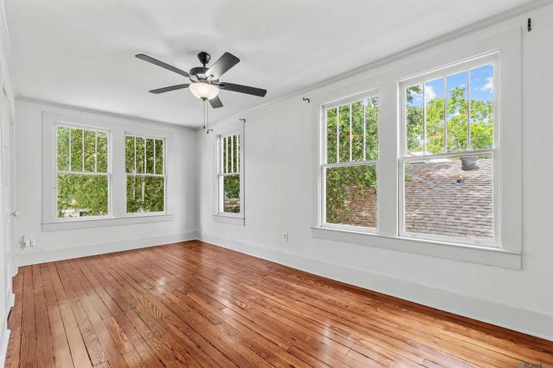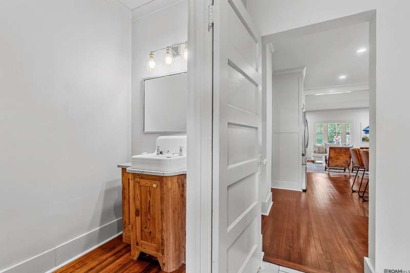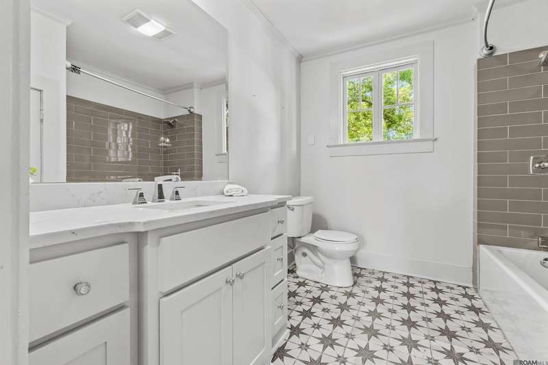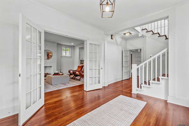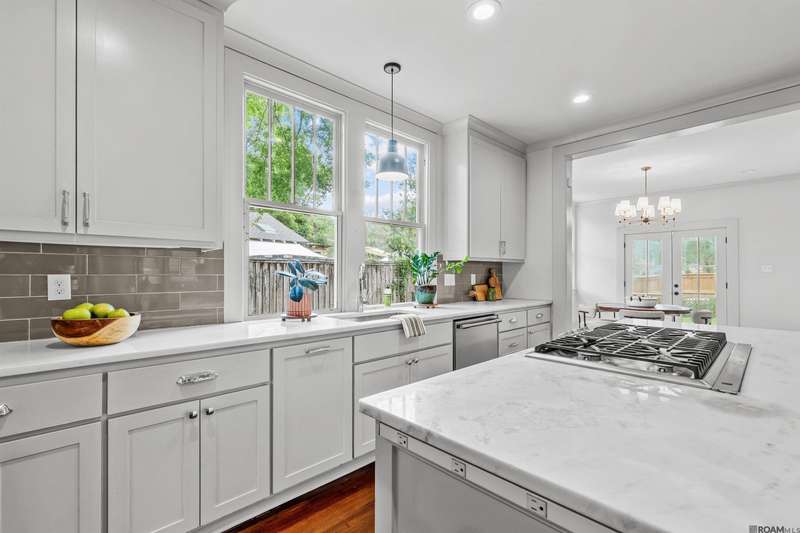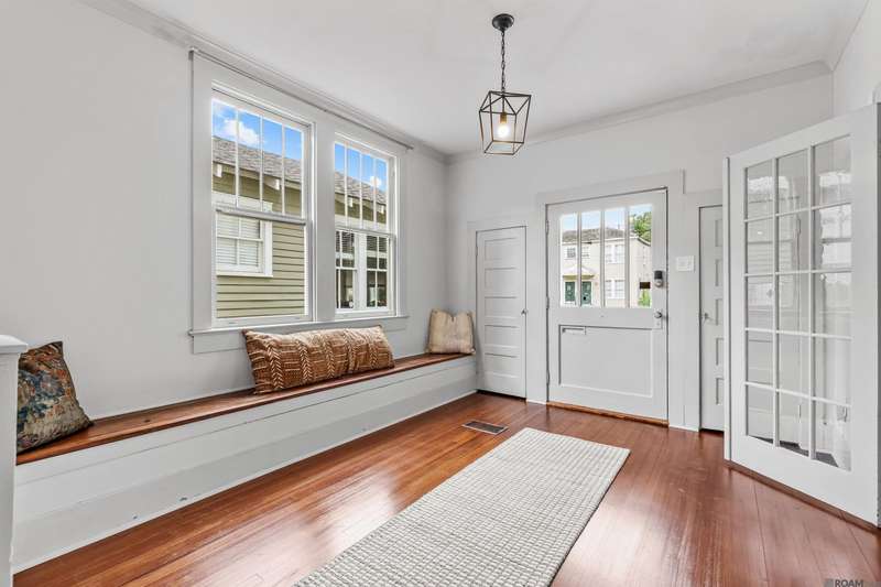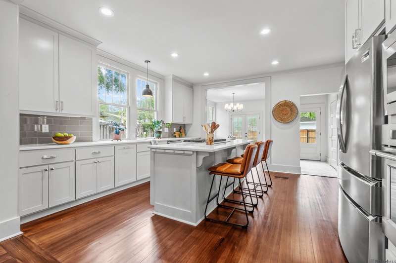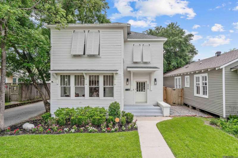 Experience the beauty and charm of this totally renovated Garden District home done by builder Brian Aucoin. Sitting on a corner lot, you’ll immediately notice the home's great curb appeal. Nice landscaping frames the front porch while original windows and doors as well as Bermuda shutters maintain the classic charm that makes this neighborhood a Baton Rouge favorite! Original wood floors, stripped and re-stained, are throughout the home. Enter into a generous foyer with built-in wood-stained bench seating and original closets on both sides of the front door. Double glass French doors open into the living room with crown molding, high ceilings and a brick fireplace, while the adjoining sunroom lets in tons of light with windows overlooking the front lawn. The large kitchen wows with quartz countertops, custom cabinets and stainless appliances with the refrigerator to remain! The scullery right off the kitchen boasts tons of additional cabinets and counterspace, a wine rack, additional sink and a second dishwasher. The kitchen also opens to a formal dining area which overlooks the newly expanded deck and fenced-in rear yard with a FULL HOME GENERATOR and a parking pad. A large walk-in laundry room, mud area, and half bathroom round out the ground floor. Upstairs the gorgeous primary suite with huge closet, redesigned bathroom with double vanities, freestanding tub, water closet, and a huge glass shower makes the perfect retreat. Bedroom two has a bathroom attached while Bedroom three accesses a third bathroom located off the main landing area. AC units, tankless hot water heater, all light fixtures, backyard fence and home generator are all 2 years or newer as well! SEE VIRTUAL TOUR and schedule your private tour!!