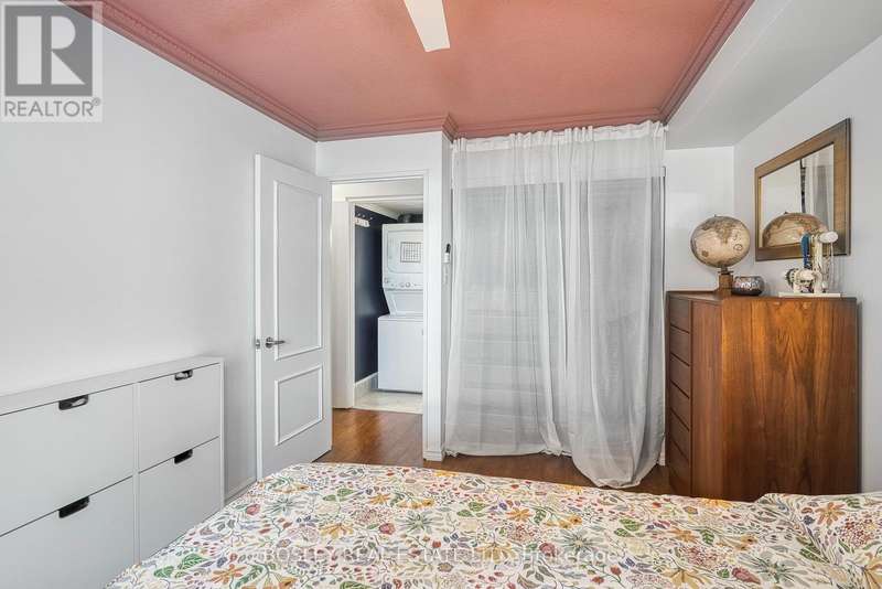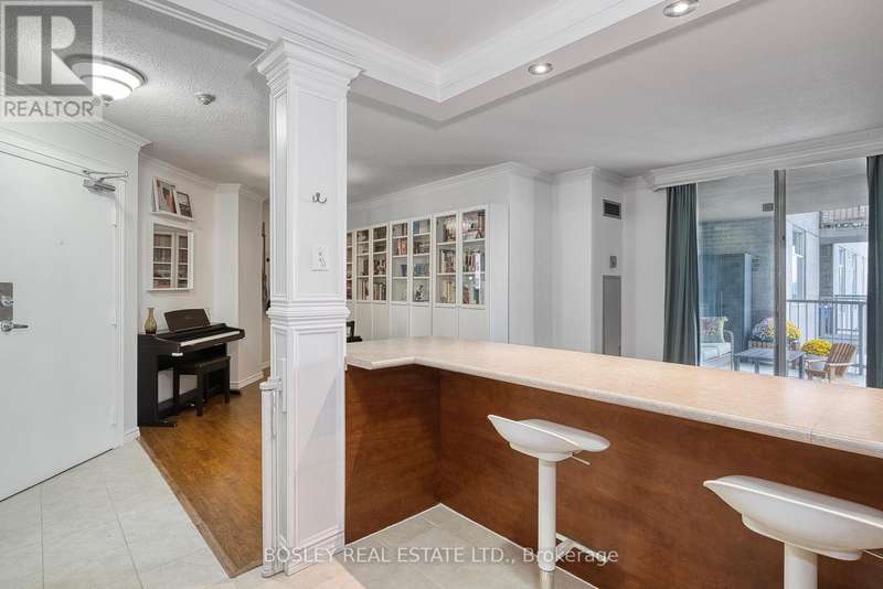 Exceptional Value in a Prime Location! Welcome to this beautifully renovated and sun-filled 2+1 bedroom condo offering stunning northwest views and generous living space. This meticulously updated unit features a modern, open-concept layout perfect for both everyday living and entertaining. The stylish kitchen boasts stainless steel appliances, contemporary cabinetry, and a sleek breakfast bar that seamlessly flows into the spacious living and dining areas.Custom built-in cabinets under the island provide additional storage and convenience. Enjoy two generously sized bedrooms, along with a fabulous den that has been thoughtfully converted from the ensuite locker into a functional home office, complete with a built-in desk and shelving-ideal for remote work or study. All of this and an updated 4piece bath. This unit also includes ensuite laundry and ample closet space. Step out onto the large, private balcony and take in Northwest views. Located in a well-managed building with plenty of visitor parking, this condo offers peace of mind with all utilities included in the maintenance fees-hydro, heat, water, and more! Unfortunately, pets are not allowed.