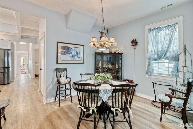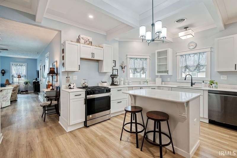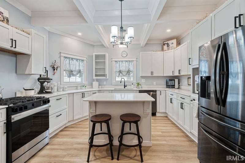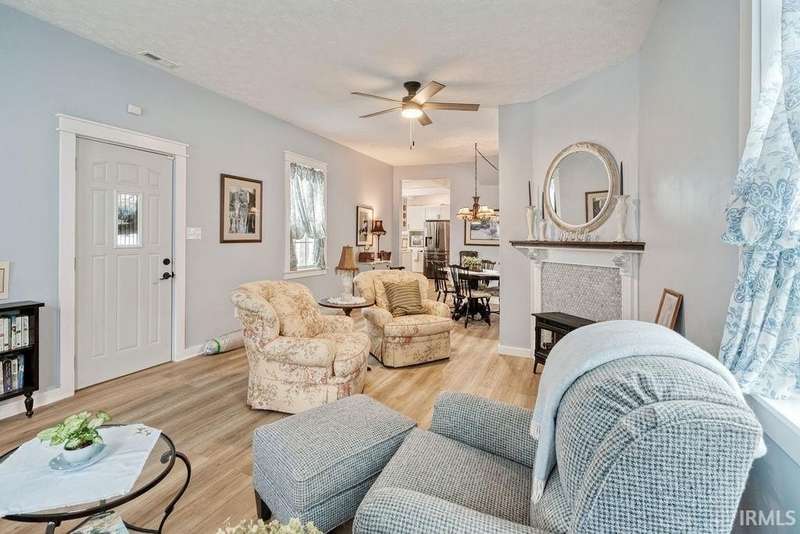 Beautifully renovated home located in the historic Old Silk Stocking neighborhood. This home has been completely transformed with all new mechanicals, roof, siding, windows, and professional landscaping. The main level features 9-foot ceilings, a spacious living and dining area, two bedrooms, and two full baths including a stylish primary suite. The renovated white kitchen offers stone countertops, island seating, stainless steel appliances, and a gas range. Upstairs provides a private third bedroom with space for a large walk-in closet or cozy retreat. Enjoy the fully fenced backyard with a paver patio and attached pergola, tranquil koi pond, and detached garage with alley access. Nothing left to do but move in and enjoy living close to all of downtown Kokomo’s shops, dining, and events.