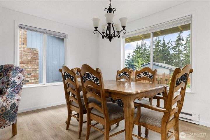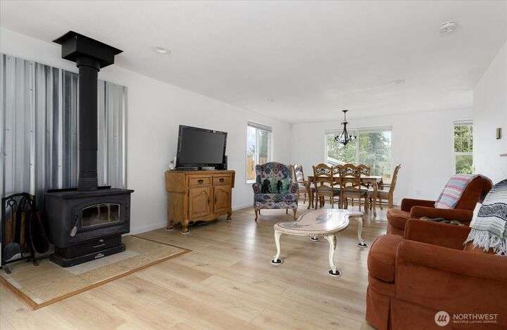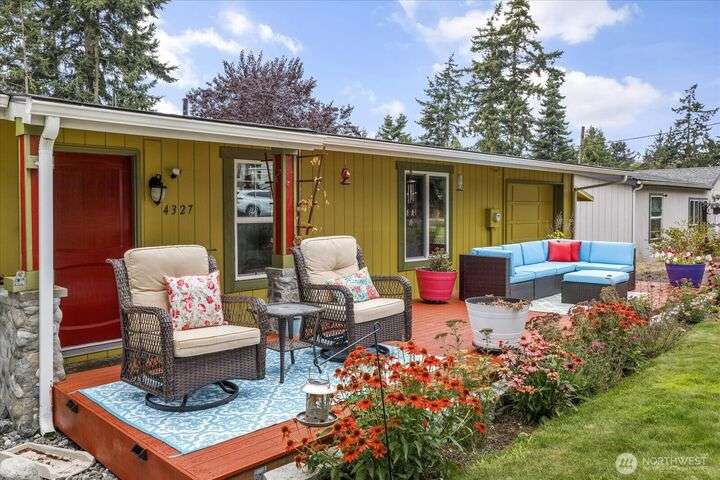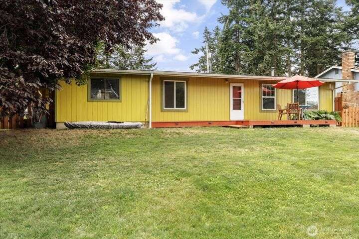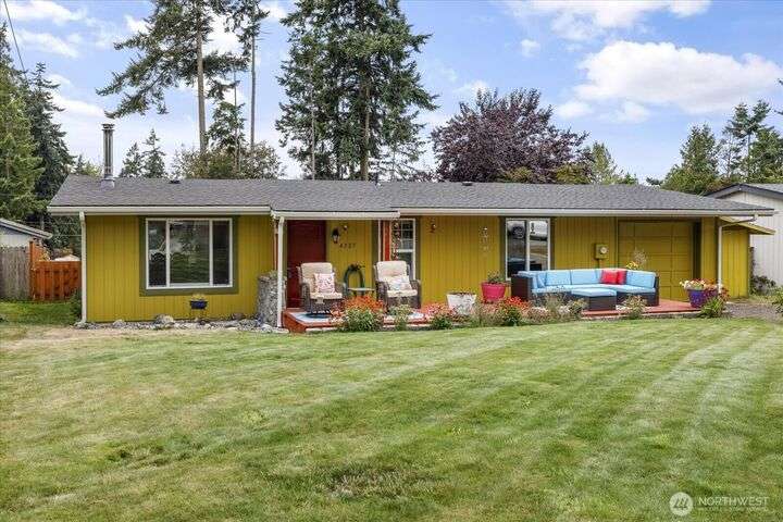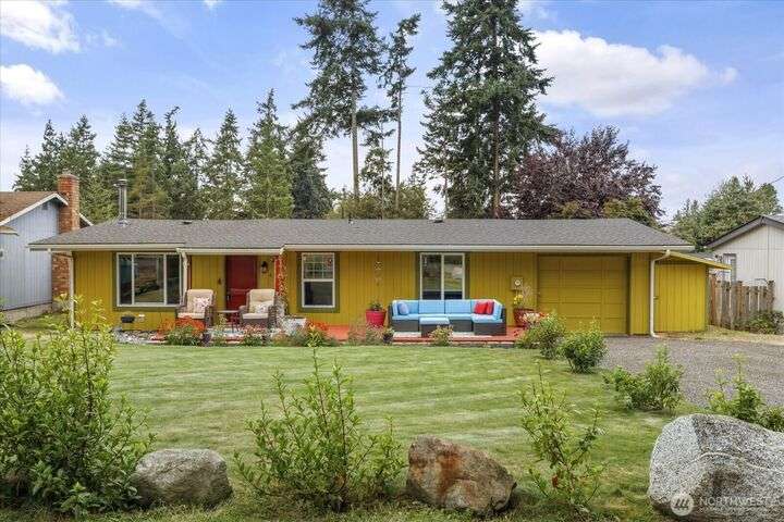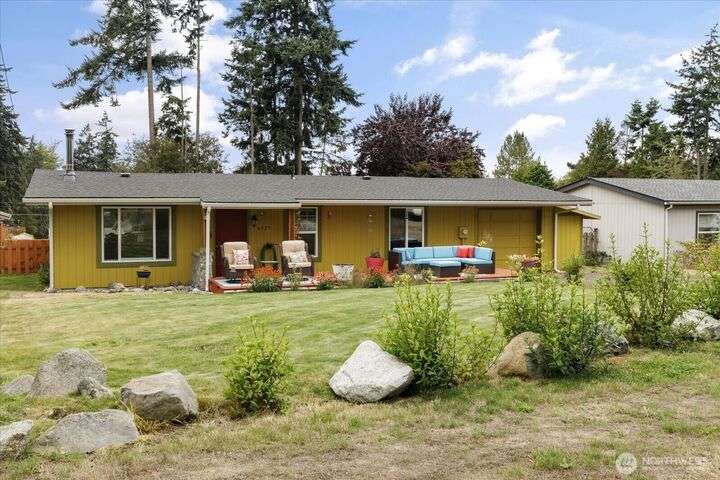 Tucked in the heart of an established neighborhood, this charming 2-bedroom rambler offers warmth, comfort, and connection. Cozy up by the wood stove, cook with ease in a kitchen where all appliances stay, and rest easy under a 2021 roof. Step outside to mature gardens, a lush lawn, and a level fenced backyard perfect for play or peace. The sprawling deck invites gatherings under the Olympic rain-shadow skies. Just minutes from the Navy base and Deception Pass State Park, this home blends serenity with convenience. Whether you're starting out, settling down, or seeking a soulful retreat, this haven is ready to welcome you home.