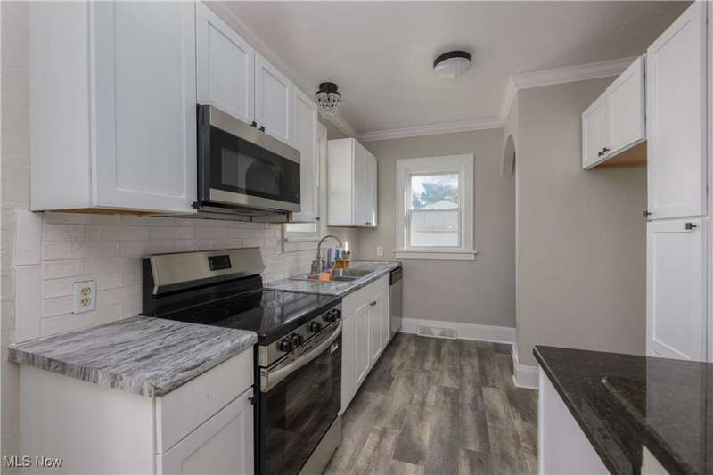 This beautifully updated 3 bedroom bungalow is almost move in ready and full of charm. Enjoy all the new flooring, new countertop and modern light fixtures throughout. The home has been freshly painted inside and out with updated landscaping for great curb appeal. The main floor features an open concept living room, dining area and kitchen-perfect for entertaining. Two bedrooms are conveniently located on the first floor, including a spacious master bedroom with adjoining flex room. Upstairs you'll find a newly finished railing and an additional bedroom w closet that was just added. There is an enclosed front porch for relaxing, a one car detached garage and full basement. Home is conveniently located close to shopping, schools, restaurants, grocery and highway. Just needs your finishing touches to complete the rehab.