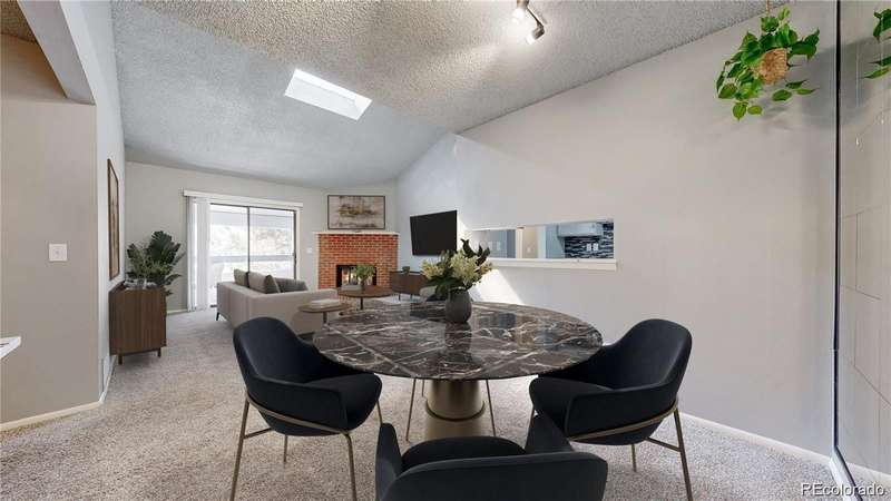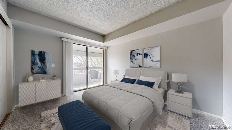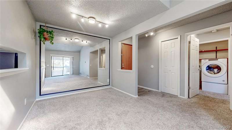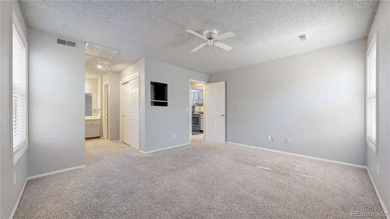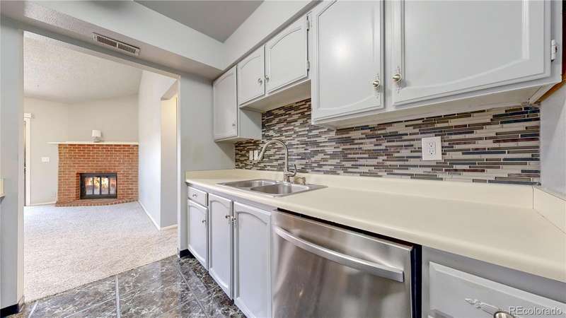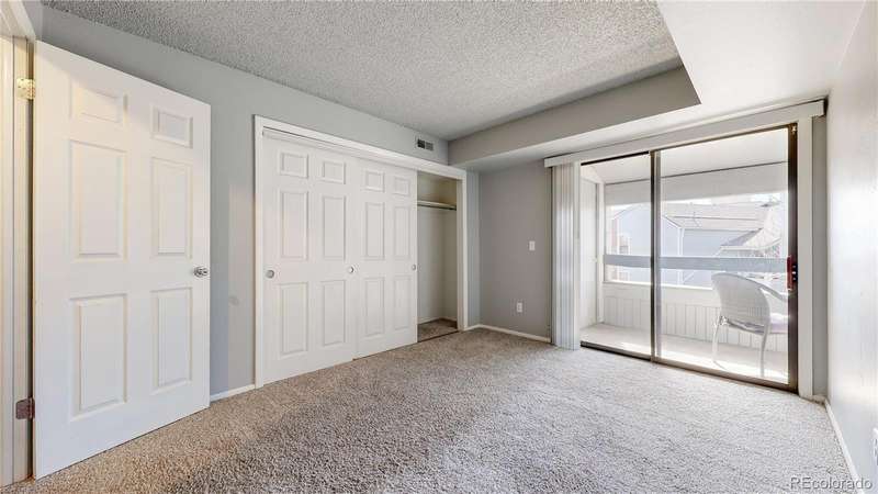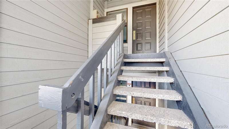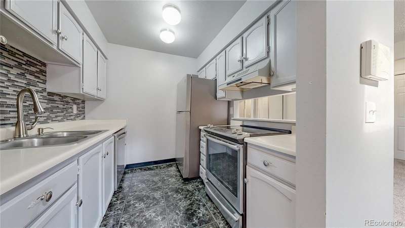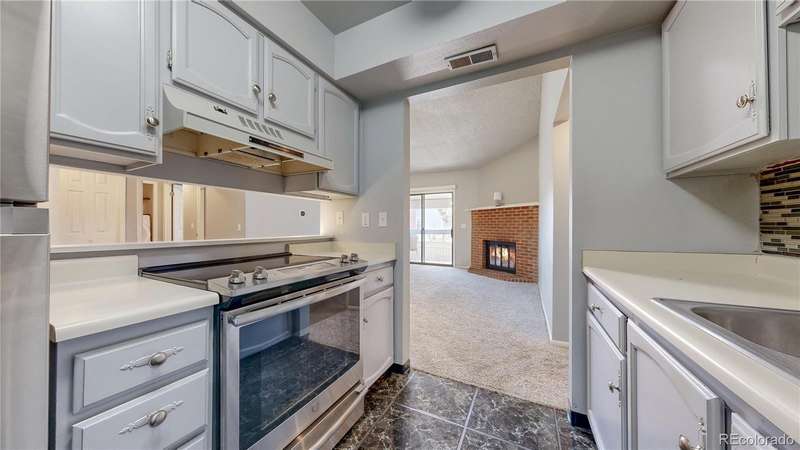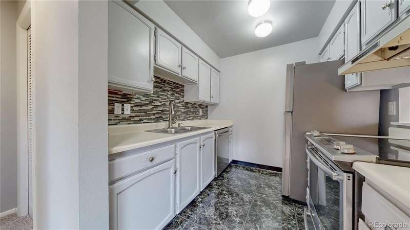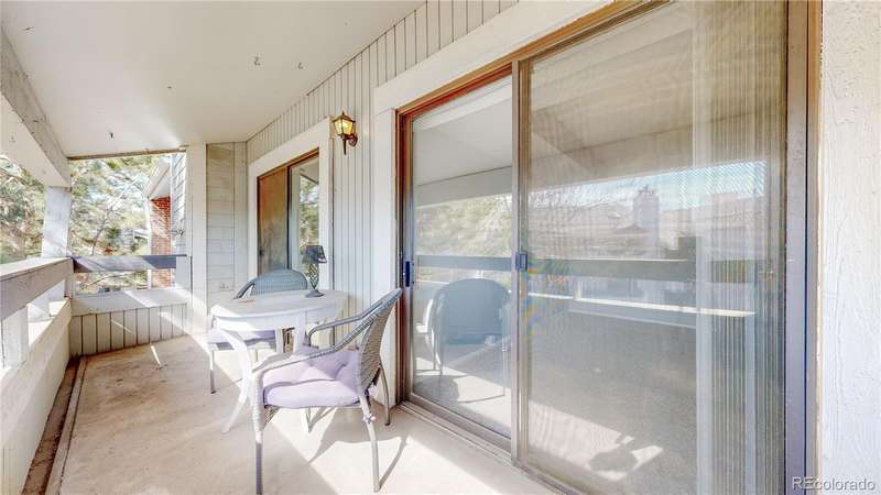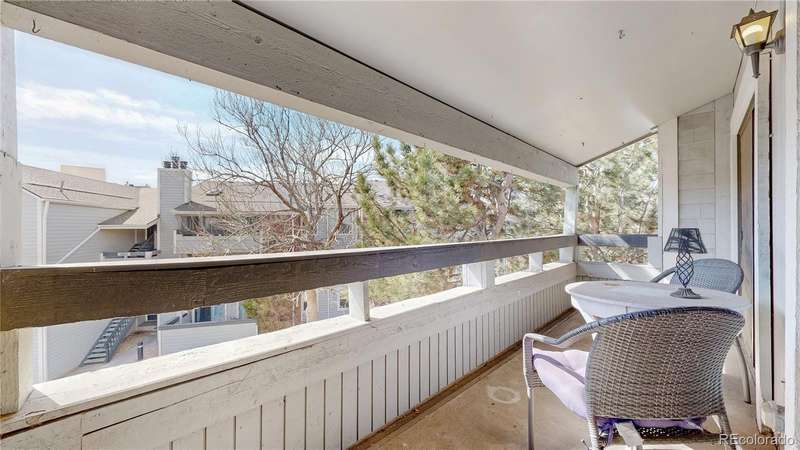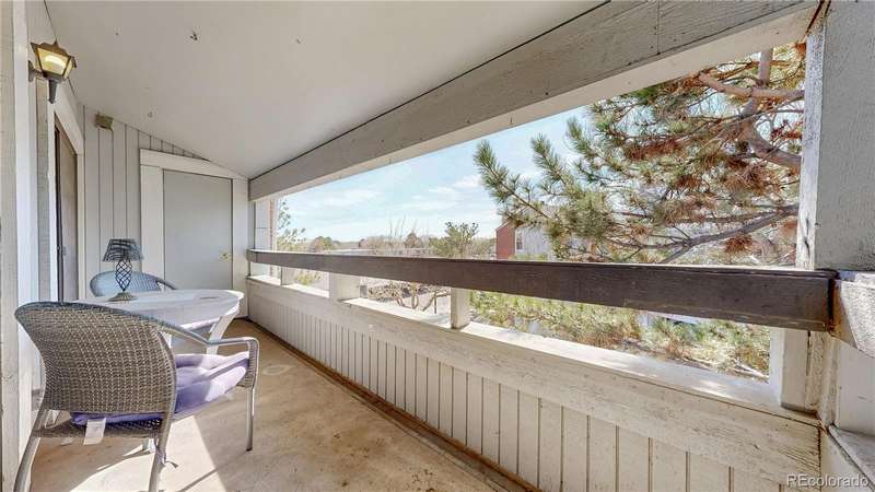 Incredible Holiday Price & Value!! Charming, move-in ready condo at Cherry Grove East. Top-floor end unit with vaulted ceiling and spacious balcony for ideal blend of indoor/outdoor living! Kitchen features gray cabinetry, marble tile flooring, glass backsplash and stainless appliances. Primary corner en suite offers privacy and space. Guest bedroom with nearby bath and laundry balance the floor plan. Washer and Dryer included for your convenience. Covered parking space, plus additional guest parking. Community Pool for a relaxing summer afternoon. Close to I-225, shopping, dining and Light Rail. Welcome Home!