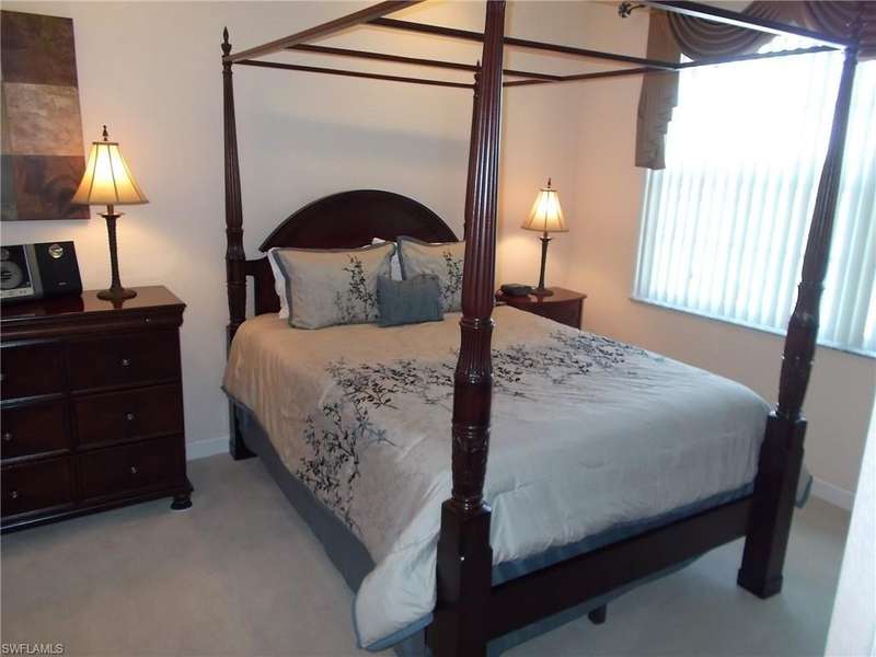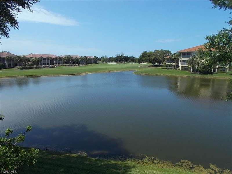 Fabulous long lake and partial golf course views from this spacious second floor end unit residence. Along with a bright and sunny southern exposure, this condo offers neutral and Earth tone colors throughout that give an inviting feel for that special vacation getaway. This residence boasts two master suites plus a formal living room and separate casual family room. All tiled living areas with beige carpeting in the bedrooms. Amenities to Ravenna include a heated pool and spa, exercise room, social club room and electronically gated entry. Enjoy the amenities of Pelican Marsh including an extensive exercise facility known as the "Inspiration Studio", tennis club, social Foundation and security guarded gated entry. This premier community is conveniently located to fine shopping, dining and entertainment, which includes the Mercato located just to the south of Pelican Marsh's main entrance, and is just a quick drive to the beach.