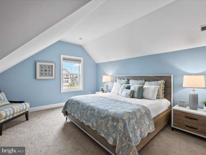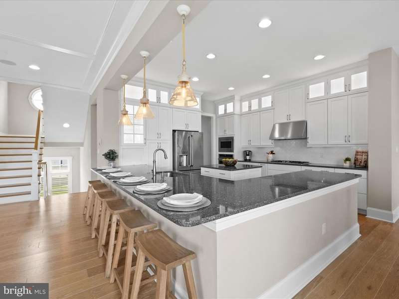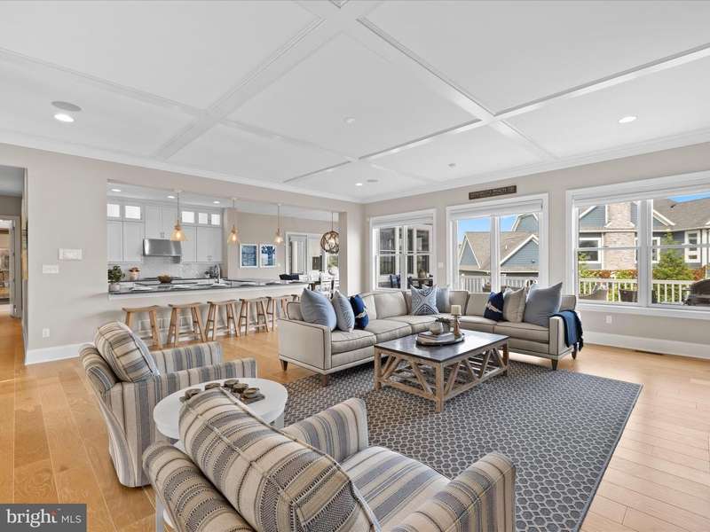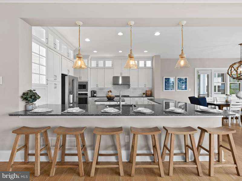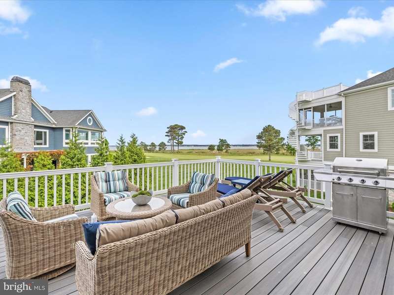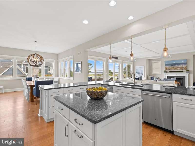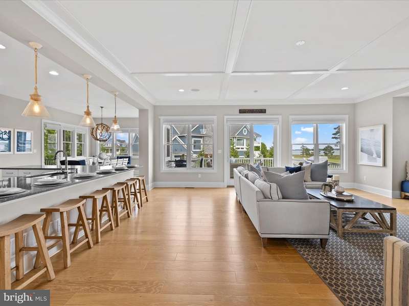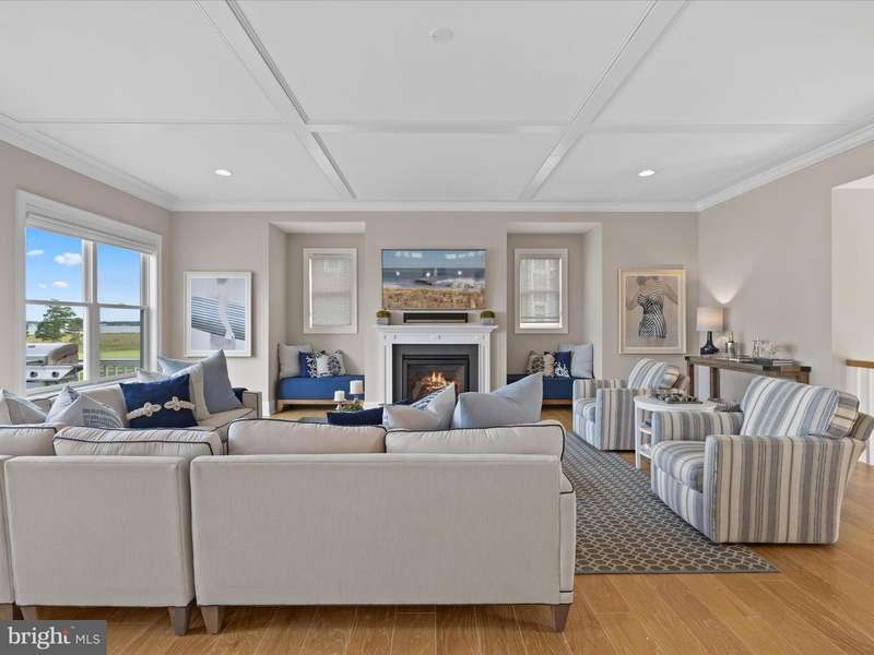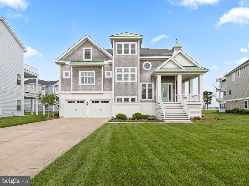 Blending timeless coastal style, superior craftsmanship, and refined finishes, this custom Echelon Grand Cayman model stands among the most impressive residences in The Peninsula. With six bedrooms and five-and-a-half baths, the home commands sweeping Indian River Bay vistas from nearly every room, perfectly framed by the 7th hole of the Jack Nicklaus Signature Golf Course-a rare combination of breathtaking water and golf course views. Authentic cedar-shake siding and a welcoming covered front porch establish irresistible curb appeal, hinting at the attention to detail found throughout. Step inside to a dramatic two-story foyer and discover three spacious levels united by 10-foot ceilings, wide-plank hardwood flooring, plantation shutters, and a freshly painted neutral palette. Walls of Anderson windows and tall glass doors flood the open concept interior with natural light and showcase the panoramic scenery that defines this extraordinary home. At its heart, an elegant great room features a coffered ceiling and gas fireplace, flowing effortlessly into the dining area and an entertainer's dream kitchen. The chef will appreciate the striking 13 × 10 L-shaped island wrapped in granite, 42-inch soft-close cabinetry with glass displays, pendant and under-cabinet lighting, high-end GE cafe appliances including a five-burner gas cooktop and double dishwashers, a convection-option microwave, timeless herringbone subway-tile backsplash, and an oversized walk-in pantry. Sliding doors invite you to dine alfresco on the open-air deck or unwind in the screened porch while soaking in dazzling sunsets. The main-level primary suite provides a private retreat with tray ceiling detail, dual walk-in closets, and direct porch access. Its spa-inspired bath offers a wrap-around dual-sink vanity, frameless glass shower with bench seating, and a separate water closet. Travel upstairs by staircase or elevator to find four generous bedrooms-two with ensuite baths-all enjoying shimmering Bay views. The lower level is ideal for casual gatherings with a sprawling recreation room, a sixth bedroom, and full bath-perfect for overnight guests. Thoughtful touches abound, including 8-foot solid-core interior doors, integrated surround-sound, a trash compactor, wall-mounted flat-screen TVs, and a dedicated irrigation system. The .28-acre homesite offers ample space for a future pool and features a large driveway that easily accommodates up to six vehicles, providing both convenience and functionality. Best of all, you're a short stroll from The Peninsula's award-winning clubhouse and Lakeside Village, home to indoor, outdoor, and wave pools, a state-of-the-art fitness center, tennis and pickleball courts, walking trails, on-site dining, and a lively calendar of year-round events. 33521 Tiderunner Avenue is more than a house-it's a statement in coastal luxury and effortless resort living. Schedule your private showing today!