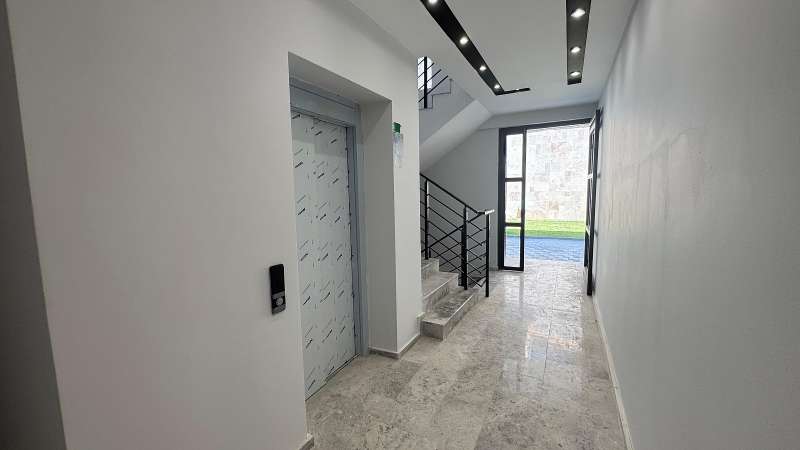 The apartments include open-plan kitchens, spacious living spaces, bedrooms, balconies, and en-suite bathrooms. Entrance-floor apartments have private gardens. Each apartment is equipped with laminated and ceramic flooring, air conditioners, video intercoms, steel entry doors, shower cabins, and PVC windows.