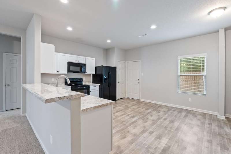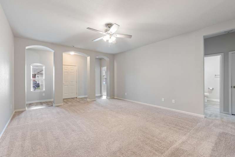 This home is quite deceiving in size from the outside, but it offers 1,644 sqft with 4 bedrooms and 2 baths. All walls have been freshly painted with one neutral color throughout and the home is sparkling clean for your move-in day. The home also has an open concept with 9' ceilings, a bar-top counter, and a kitchen-dining combo. This all lends to be the perfect place for hosting friends and families. A split floor plan gives way to a spacious primary suite with a large bathroom and walk in closet. An east facing backyard borders a nice row of trees, so you'll have the perfect place to hang out on these warm summer evenings. Less than 5 minutes to all the shopping and restaurants you could want. Make a call today to schedule your showing.