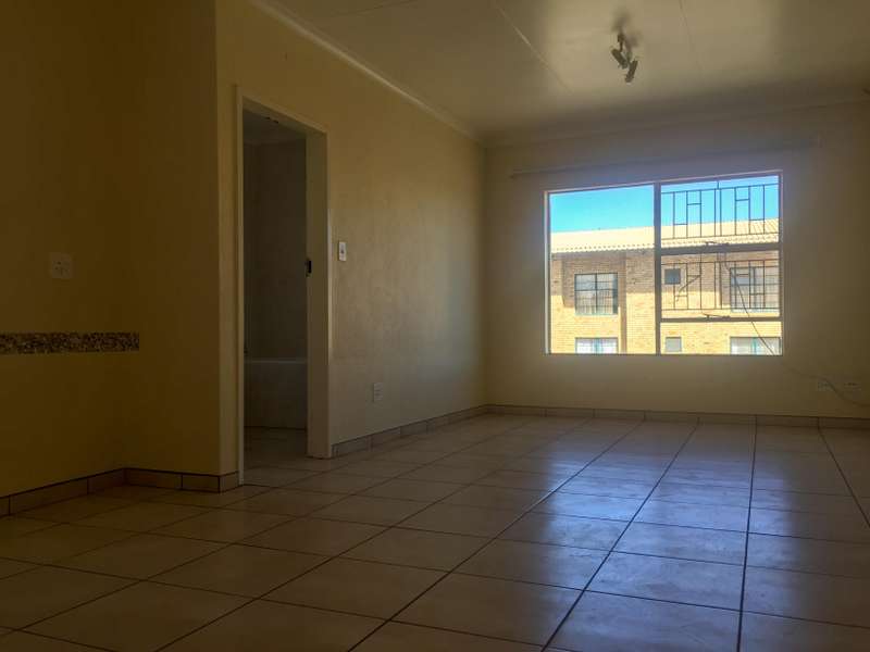 A spacious flat situated in a secure complex with 24 hour security and guard on duty. The flat consists of an open plan kitchen and living area with plenty of space, bedroom and bathroom. The complex has a communal pool and braai area. Secure carport.