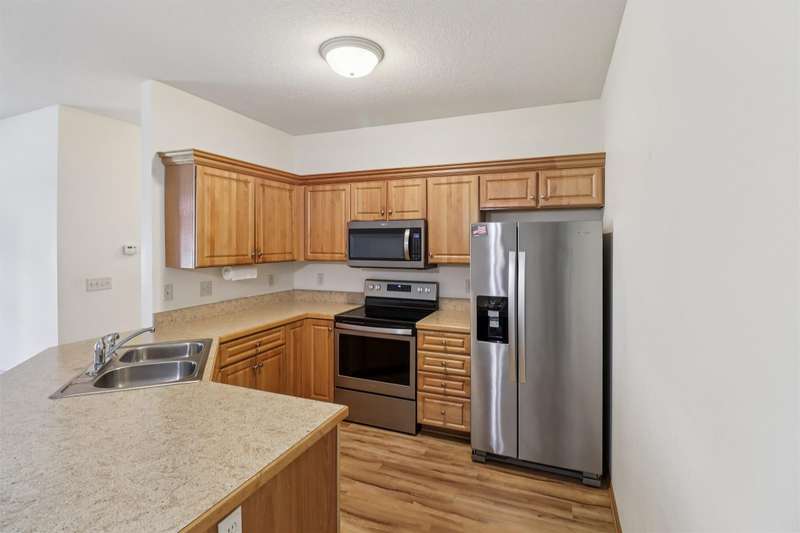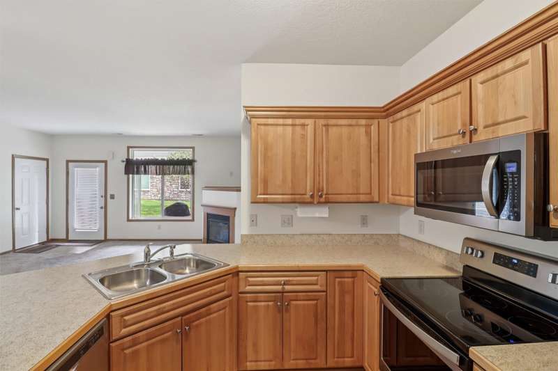 Ground level living at its best! Come and see this ground floor zero entry townhome within walking distance to groceries, restaurants, library and more. As you enter, you'll see the comfortable living room with fireplace and the eating area. Countertops and cabinets have been updated. The appliances are all in great condition and were new 2022. This home features a large master bedroom with a spacious walk-in closet. Furnace and Air Conditioner were updated in 2021. The roof was replaced in 2023. This home is Move-in Ready! Put the mover and shovel away and enjoy the townhome living. Don't let this property in excellent condition be overlooked.