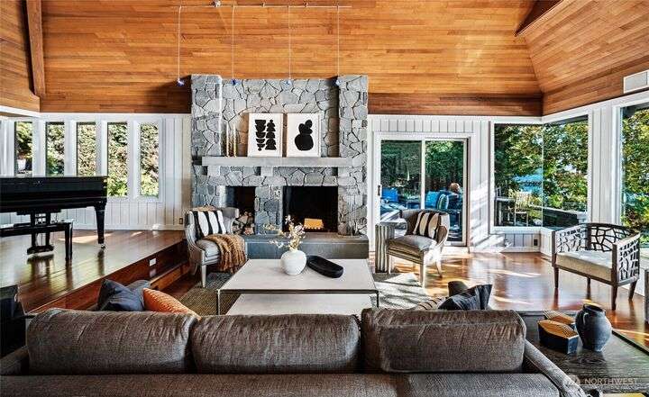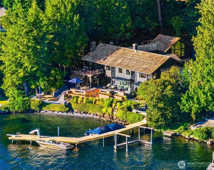 Cruise home to a spectacular legacy residence found tucked upon the coveted western shore of Mercer Island. Set upon 137+/- feet of private no bank waterfront, this soul satisfying, custom five bedroom residence was conceived in 1974 with active entertaining in mind. The heart of the nearly 5,200sf home is centered with an updated kitchen allowing a natural flow indoors & out to entertaining spaces and places of welcoming retreat. The primary suite offers tranquil views of Lake WA and Seward Park from the private deck, an ample walk in closet, and luxurious five piece bath. Additionally, the second level enjoys two bedrooms with west facing lake views & large bonus/flex room- perfect for play, media or workout studio.
