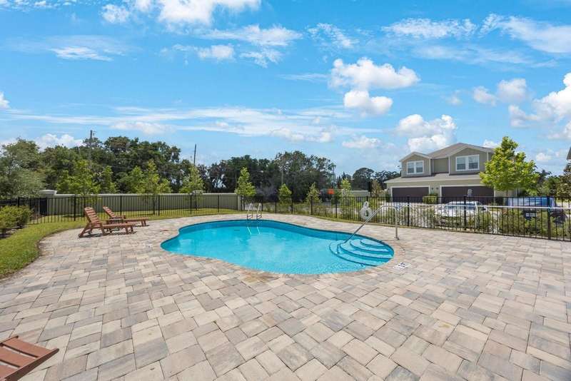 BRAND NEW luxury townhome situated right off of Alt-19, along the beautiful Pinellas Trail and a stone's throw from Downtown Palm Harbor. This unique community features a community pool and no rear neighbors! With almost $70,000 in designer upgrades alone, this place is ready for move in, without the hassle of needed repairs or aging systems. As you walk up the brick pavers driveway, past your oversized 2-car garage, you enter a private walkway to the front door, opening into a spacious open living room concept with a serene view of the backyard and covered patio. The kitchen is designed with high end cabinets and upgraded stainless steel appliance. The uniformity of the luxury vinyl plank flooring throughout the first floor, give it a fresh, clean, calm feel. There is a half bath, powder room on the first floor. All bedrooms and laundry room are conveniently on the second floor. The master bedroom en suite has a massive walk in closet...a definite must-see! This home comes with a 10-yr structural warranty from the date it was built and will be transferred to new owner. Have peace of mind. Golf cart access to Ozona, public boat ramp and so much more. Home is within walking distance to so many area conveniences, as well as to PHU high school. Furnishings are negotiable. NO flood insurance needed. Builder had community built up and FEMA certified.