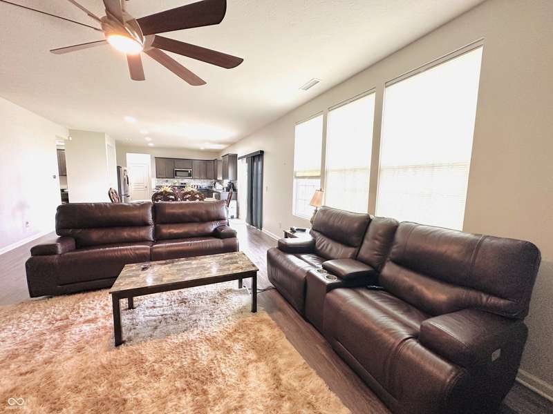Don't wait to see this 4 bedroom with a loft home in Zionsville School District. Open concept downstairs with luxury plank floors. The kitchen has granite counter tops, tall cabinets, huge island, stainless steel fridge, gas stove, microwave and dishwasher that stays with the home and off to the side 2 desk areas. Upstairs carpet ,with each bedroom having their own walk in closets. Relax in your fenced backyard with a stamped patio and firepit. Home has a 2 car garage with bump perfect for extra storage space. Front view of the home is across from a lake. Clark Meadows amenities include club house, pool, nature areas, park & playground, tennis, walking trails.