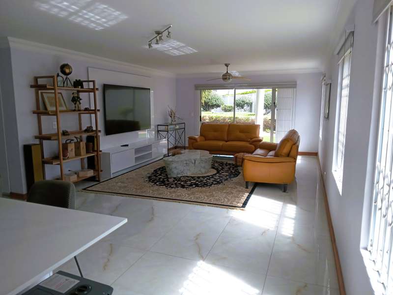 This luxurious and elegantly furnished apartment is a few meters from the sea and, being on the ground floor, has its own, private patio. an open plan living room/ultra modern kitchen, a visitor's toilet, four bedrooms and two full bathrooms complete the accommodation. Two parking bays in the underground, communal parking garage are allocated to this flat. There is also a communal swimming pool and braai area. The estate offers a nine hole golf course, swimming pool, tennis courts, walkways, outdoor gym, clubhouse with bistro and 24/7 manned security.
