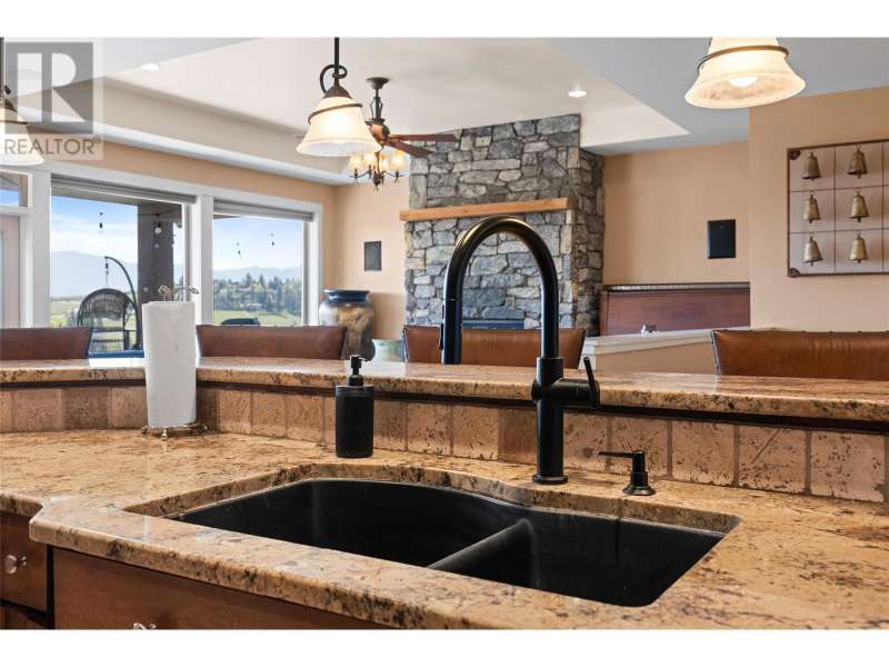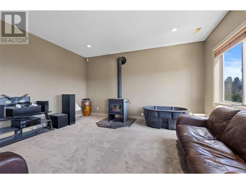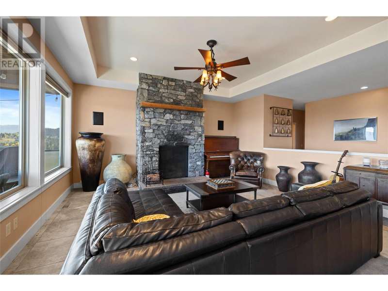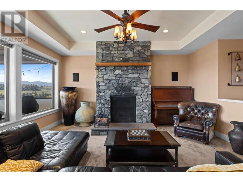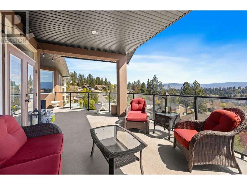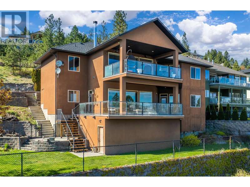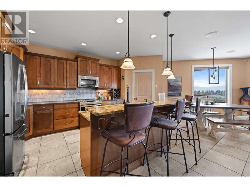 Boasting over 4700sqft of quality craftmanship, this large family home sits at the top of Horizon drive with sweeping views across the valley. It's main level offers an open concept layout featuring a large kitchen with granite countertops and high end SS appliances, custom stone wood burning fireplace to heat the home through winter, views from every window and an oversized covered balcony. Upstairs you'll also find 3 bedrooms including a primary bedroom and luxury ensuite equipped with heated floors, jetted tub, double vanity, custom shower and large walk in closet. Downstairs comes with 2 more bedrooms, open livings spaces, another oversized deck, bonus room and massive theatre room flaunting it's 140"" projector screen, surround sound and wet bar for entertaining at the highest level. It's Large driveway leads to an oversized double garage with room for a workshop. The lot also stretches across the road to offer additional parking and room for toys. Fully fenced and irrigated backyard. Built in sound system throughout the home. Over 1000sqft of additional storage space. And even a bonus chicken coop for your fresh eggs every morning! This home has it all! (id:58403)