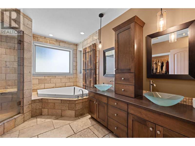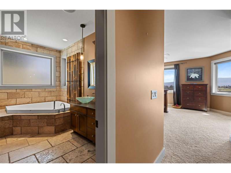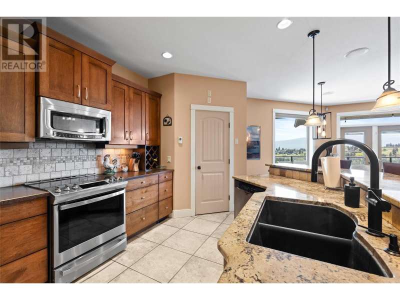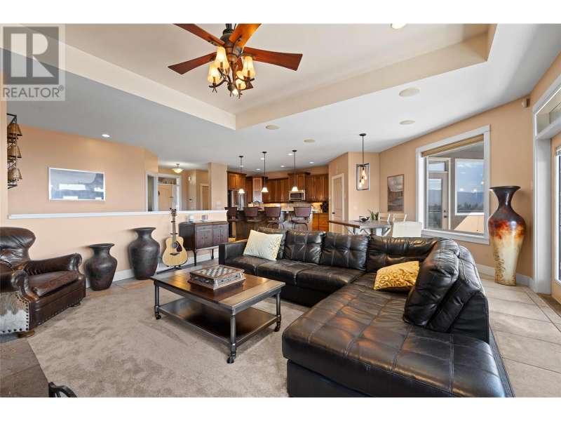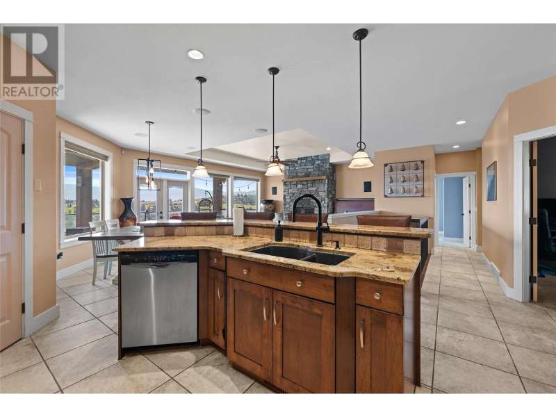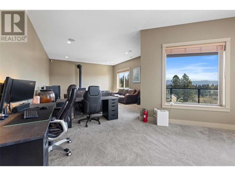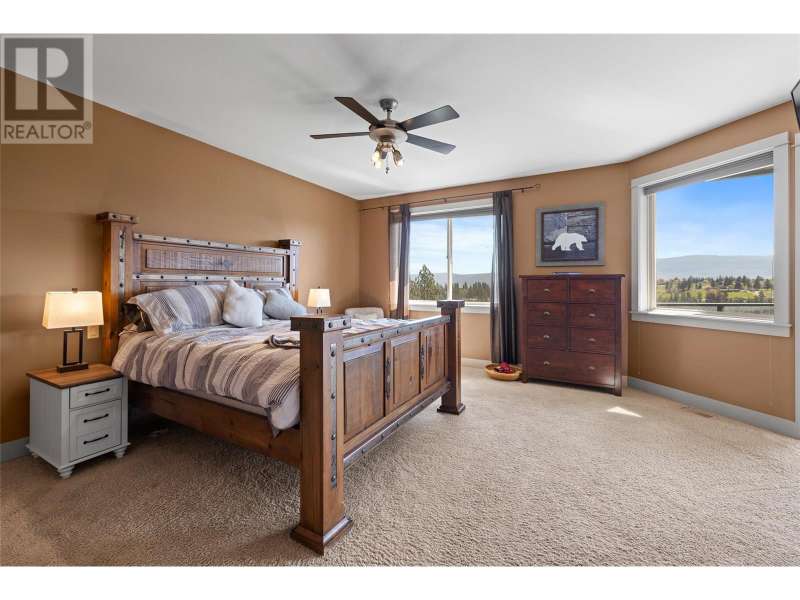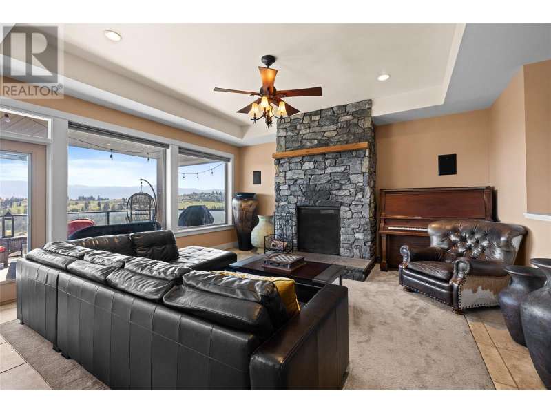 Boasting over 4700sqft of quality craftmanship, this large family home sits at the top of Horizon drive with sweeping views across the valley. It's main level offers an open concept layout featuring a large kitchen with granite countertops and high end SS appliances, custom stone wood burning fireplace to heat the home through winter, views from every window and an oversized covered balcony. Upstairs you'll also find 3 bedrooms including a primary bedroom and luxury ensuite equipped with heated floors, jetted tub, double vanity, custom shower and large walk in closet. Downstairs comes with 2 more bedrooms, open livings spaces, another oversized deck, bonus room and massive theatre room flaunting it's 140"" projector screen, surround sound and wet bar for entertaining at the highest level. It's Large driveway leads to an oversized double garage with room for a workshop. The lot also stretches across the road to offer additional parking and room for toys. Fully fenced and irrigated backyard. Built in sound system throughout the home. Over 1000sqft of additional storage space. And even a bonus chicken coop for your fresh eggs every morning! This home has it all! (id:58403)