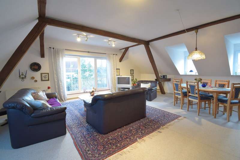 This two-family house, originally built as a barn in 1910, is situated on a plot of approx. 483 m² and offers a living space of approx. 181.1 m². The building was converted into a residential house in 1997. The property is in need of modernization and has central heating with a low-temperature oil heating system, which was also installed in 1997. The house consists of two separate residential units, which makes it ideal for multi-generational living or a combination of living and renting. The first floor of the property comprises a two-bedroom apartment with an impressively large living room, which extends over 35.3 m². From here you have direct access to the terrace and can enter the adjoining garden area - an ideal addition for anyone who enjoys spending time outdoors. The kitchen is equipped with a fitted kitchen and offers plenty of space for your culinary creations. There is also a tiled daylight bathroom on this level, which is equipped with both a shower and a bathtub. A further living unit awaits you on the top floor. The spacious living area with exposed beams and a floor-to-ceiling window front offers a variety of furnishing options on a total of 39.2 m². This living level comprises three further rooms and two tiled daylight bathrooms. One of these bathrooms is equipped with a shower, while the other has both a shower and a bathtub. The property is divided 546 / 1000 according to § 8 WEG. The two residential units are not divided according to WEG. The two-family house offers space for tenants or can be used as a multi-generational house. The property has a quality of furnishings that is classified as normal and is ideal for buyers who wish to customize their living space. In its current form, the house offers numerous possibilities to bring it up to date, including the technology, and to adapt it to personal requirements. With a total of seven bedrooms and three bathrooms, the house offers plenty of space for a large family or two separate households. A viewing on site will give you a comprehensive impression of the possibilities offered by this property. Bring this property to life with your vision and let your creativity run free.