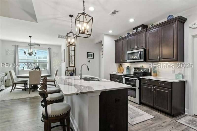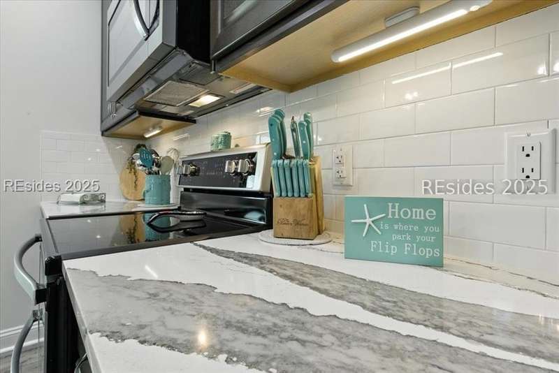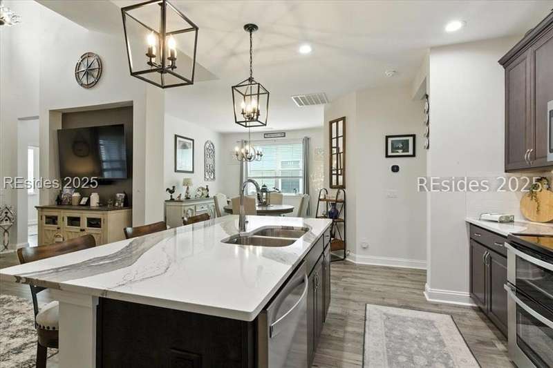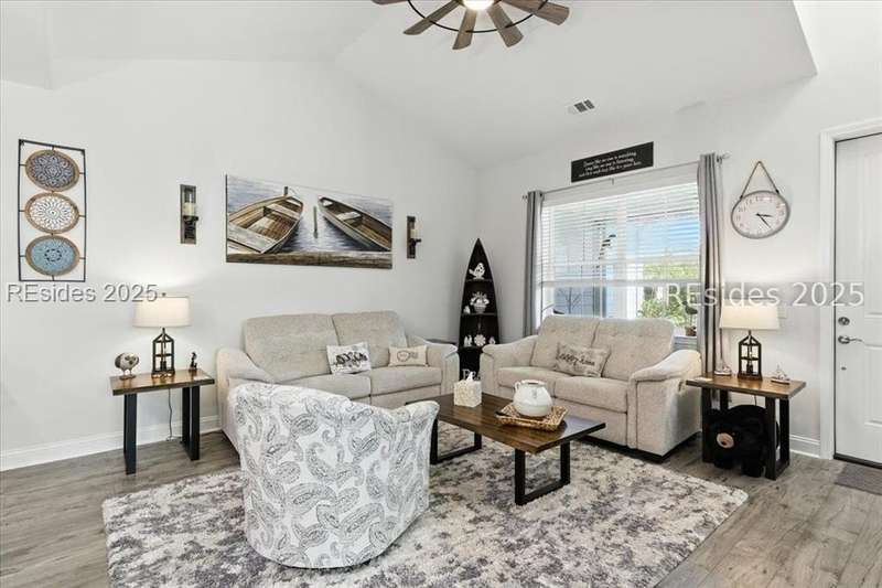 Your Slice of Paradise Awaits in Latitude Margaritaville! Relax and unwind in this beautifully upgraded cottage home, perfectly situated on a prime lot with sweeping, serene landscape views. From the moment you step inside, you're welcomed by a sense of warmth and comfort that makes this home truly special. The gourmet kitchen is a chefs dream, featuring designer countertops, 42-inch soft-close cabinets with elegant crown molding, under-cabinet lighting, a classic subway tile backsplash, and double ovens, perfect for entertaining or enjoying a quiet night in. Both bathrooms exude spa-like luxury with seamless glass showers, floor-to-ceiling tile, and upgraded quartz countertops with undermount square sinks. Thoughtful upgrades continue into the garage, which includes a smart garage door opener, basin sink, shelving and cabinetry, a water filtration system, whole-home surge protector, and pull-down stairs to an insulated, floored attic coffering plenty of extra storage space. Both the garage and lanai feature a durable, sleek epoxy finish. With high-end finishes, smart upgrades, and an unbeatable location, this is more than a home, it's your own personal paradise in the heart of Latitude Margaritaville.