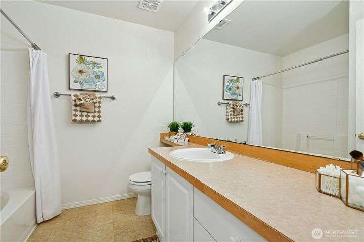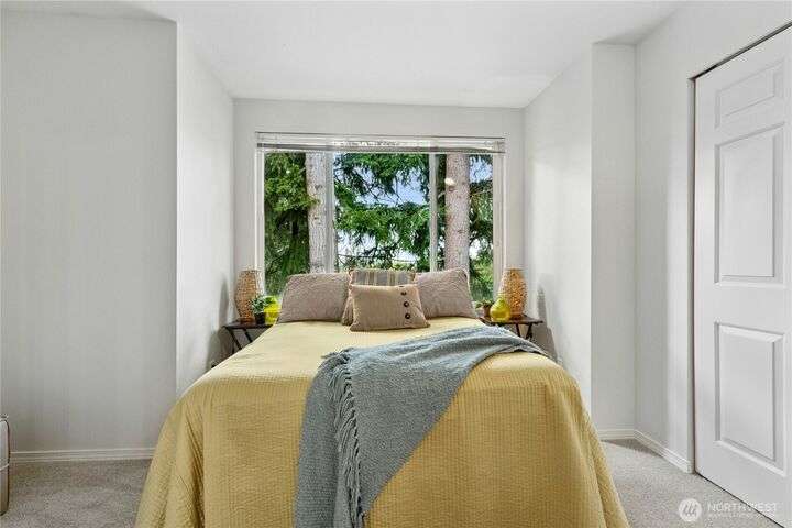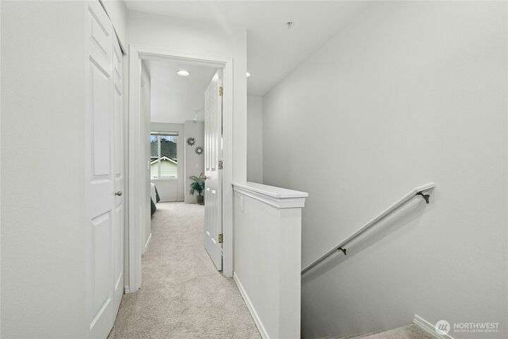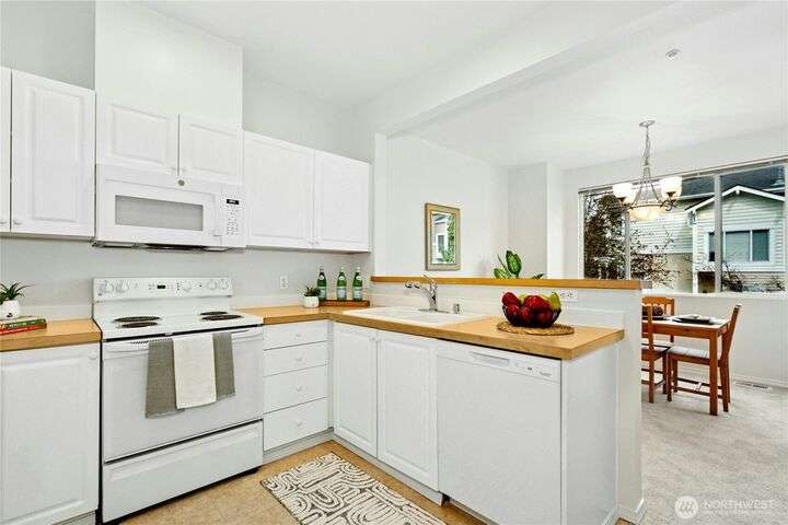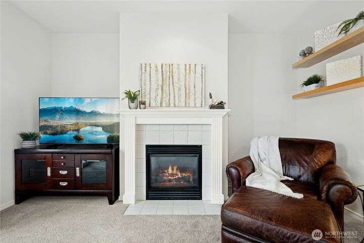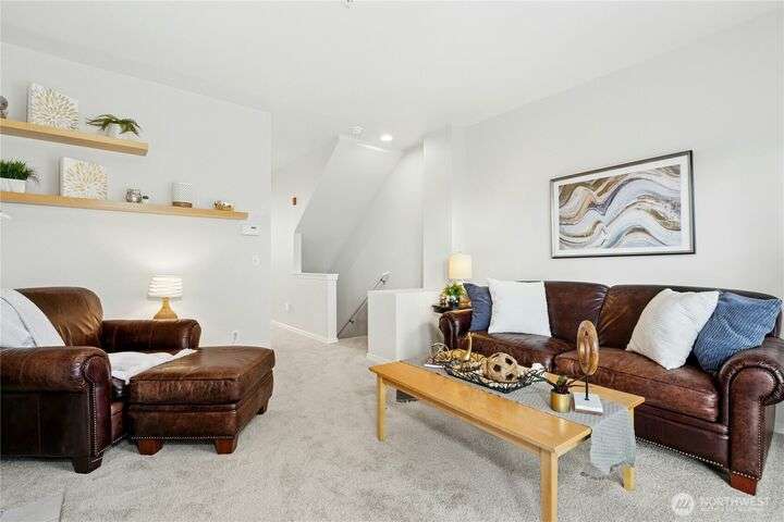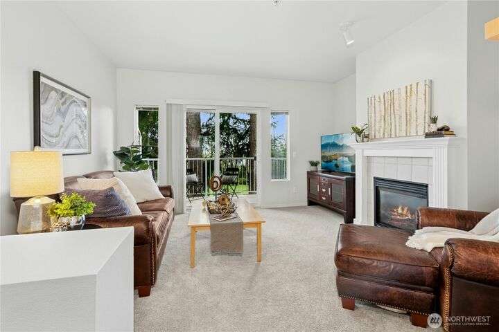 New Price! Interest rate but down available to Buyer! Located near The Village at Totem Lake, with parks and trails nearby. Fresh paint and new carpet throughout. Main floor features a bright living room with gas fireplace, sunny deck, updated kitchen with new dishwasher and microwave, breakfast bar, and dining area. Upstairs: spacious primary suite, 2nd bedroom, full bath, and stackable washer/dryer. Tandem 2-car garage with extra storage and patio. Community amenities include clubhouse, gym, EV charging, and no rental cap!