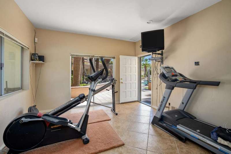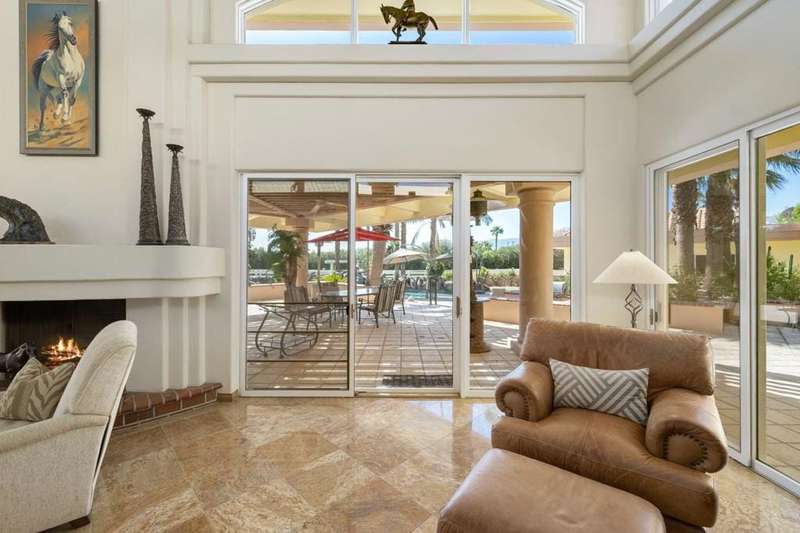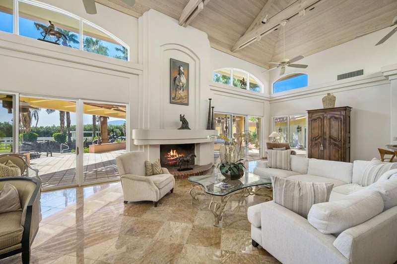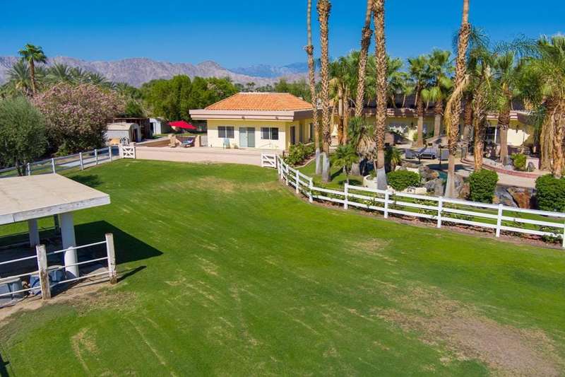 Welcome to Vista Montana Acres, a 2.5 acre equestrian estate comprised of 2 properties. The first is a spacious 5 bedroom, 4.5 bath home with stunning wood planked cathedral ceilings, an open concept kitchen with professional grade stainless steel Viking appliances, separate formal dining and living rooms, full wet bar,perfect for entertaining as well as 3 grand fireplaces and a two room master retreat with spacious en suite containing a spacious walk in closet, large glass enclosed shower, separate soaking bathtub and gorgeous exterior views including the panoramic southwest mountain scenery that surrounds. The second house is comprised of a 2 bed, 2 bath guest house containing a kitchenette and private laundry for added convenience! Both are tastefully furnished with western stylings and separated by a beautiful pool complete with descending rock waterfall, secondary lap pool, above ground spa and built in barbecue area, large covered patio with misters as well as a large fully enclosed grass pasture and covered stable for your equestrian needs. Located on a secluded street surrounded by lush landscaping for ultimate privacy within the exclusive gated community of La Quinta Polo Estates with modest HOA dues, directly across from Eldorado and the Empire Polo Fields, Coachella Valley's premier destination for world-class polo competitions.Seller financing available.