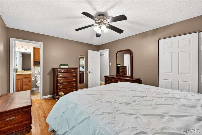 Welcome to this Fabulous Multi Level Home that's close to everywhere you want to be! Walking distance to Lonedell Elementary. Move-In Ready, Spotless, Beautiful, Neutral decor. The Living Room features Wood Flooring and a Bay Window Seat. The Kitchen offers Granite Counters, Maple Cabinetry, 18 Ceramic Tile Floor, Brushed Nickel Light Fixtures and a Bosch Dishwasher. This home offers 3 generously sized bedrooms, all with Wood Floors and Ceiling Fans. The Primary Bedroom has an Ensuite 1/2 Bath with 18 Ceramic Tile Floor. Bedroom 2 overlooks the front yard. Bedroom 3 has Built-In Cabinetry for a Study/Office. In the lower level you will find the spacious Family Room, perfect for movie nights, game days, or a play area. There is also a Laundry/Utility room plus 2 storage areas and Rough In for a Bath located on the lower level Step outside to Backyard & Paver Patio, ideal for BBQs or unwinding. Whether you're dreaming of a thriving garden, watching local wildlife over morning coffee, your outdoor space has it all! FENCED backyard to keep children and pets IN and critters OUT! Attached extended 2 car garage has built-in shelving for storage. NEW (2025) Architectural Shingles and Gutters. Newer Trane HVAC systems. Rough In the Lower Level for a future Bathroom!