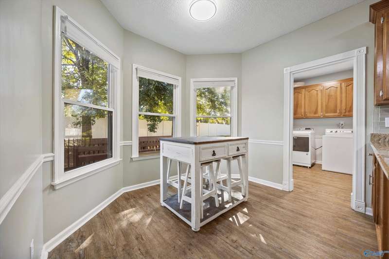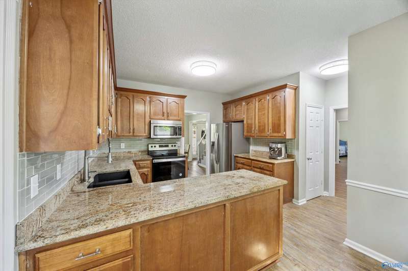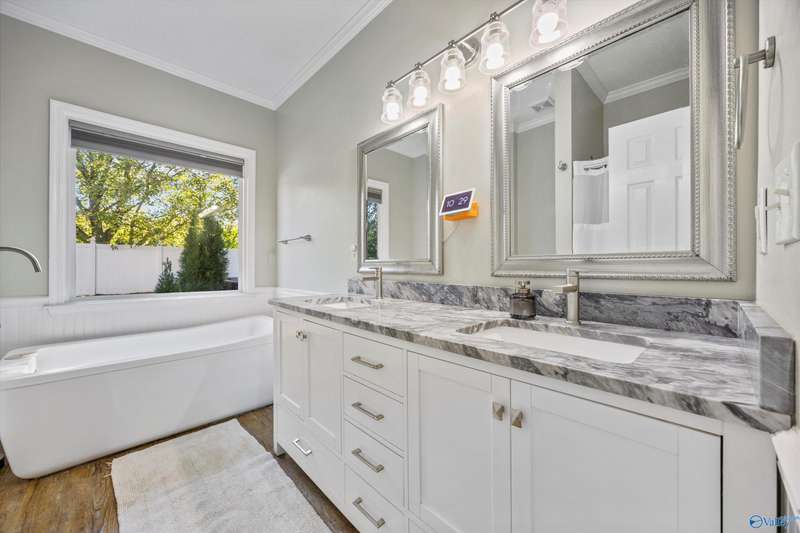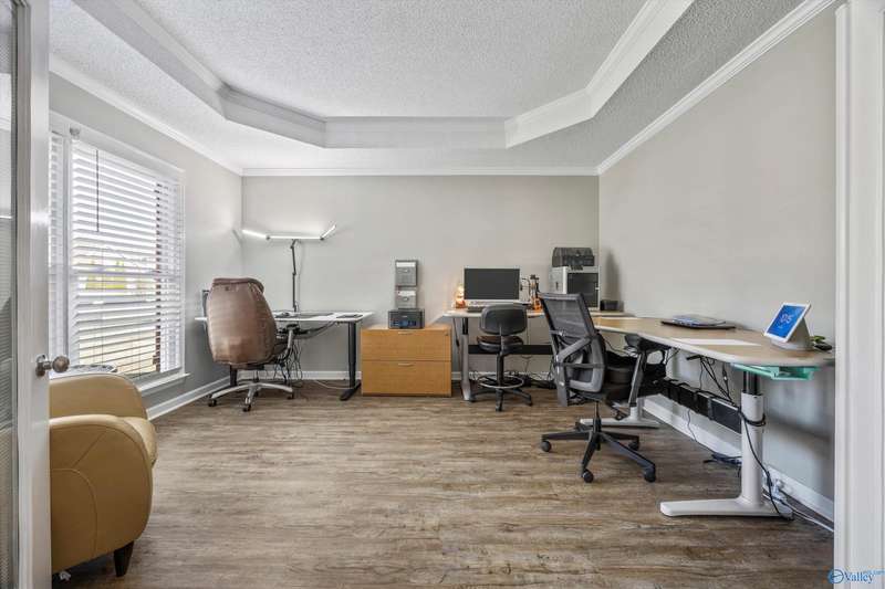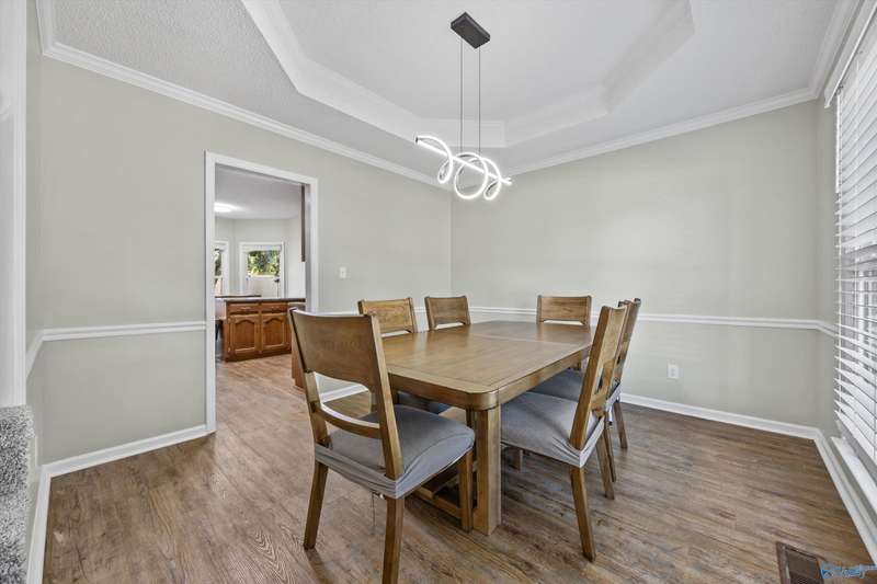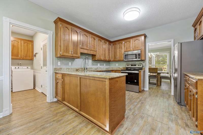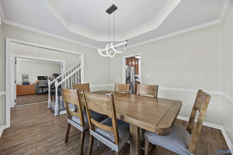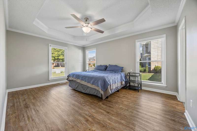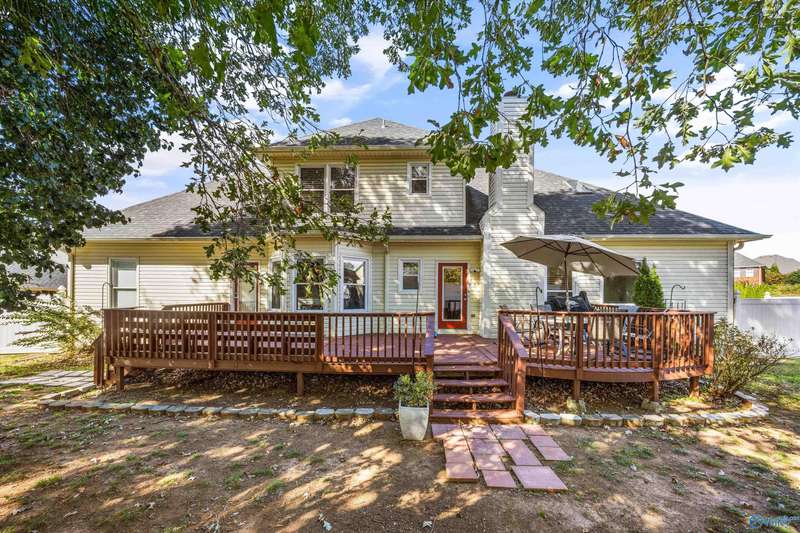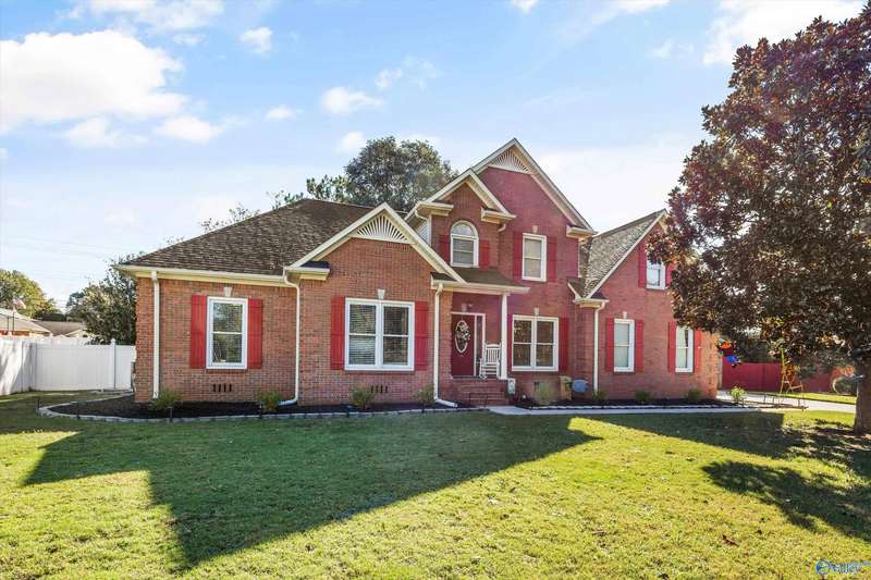 Located in the heart of Madison, this updated 5-bedroom home offers style and convenience. The primary suite is on the main level with trey ceiling, walk-in closet, and lots of natural light. Private office downstairs with french doors. Upstairs are 4 additional bedrooms with spacious closets, and a full bath; 5th bedroom room could be bonus space. Fresh paint and new laminate flooring elevate the interior. Major upgrades include new HVAC units and air handlers for both levels, a replaced water heater element, crawlspace moisture barrier replaced, and a storm shelter. Roof is only 5 years old. The fully fenced backyard features a deck, garden beds, and shade trees. All on a quiet cul-de-sac!