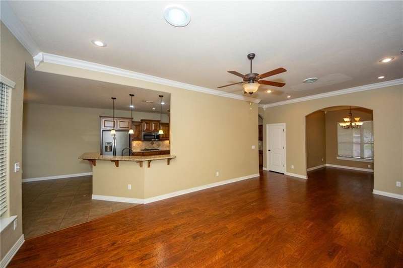 Move-in ready 4 bed, 3 bath home in Cornerstone S/D. Granite countertops throughout, wood flooring in living area. Kitchen features a 5-burner gas range and double ovens. Big primary bed and bath includes tile shower, whirlpool tub, and walk-in closet. Custom built-ins in living room and large covered patio. 3-car garage and attic offer plenty of space for vehicles and storage. Neighborhood amenities include a swimming pool, walking trail, and playground.