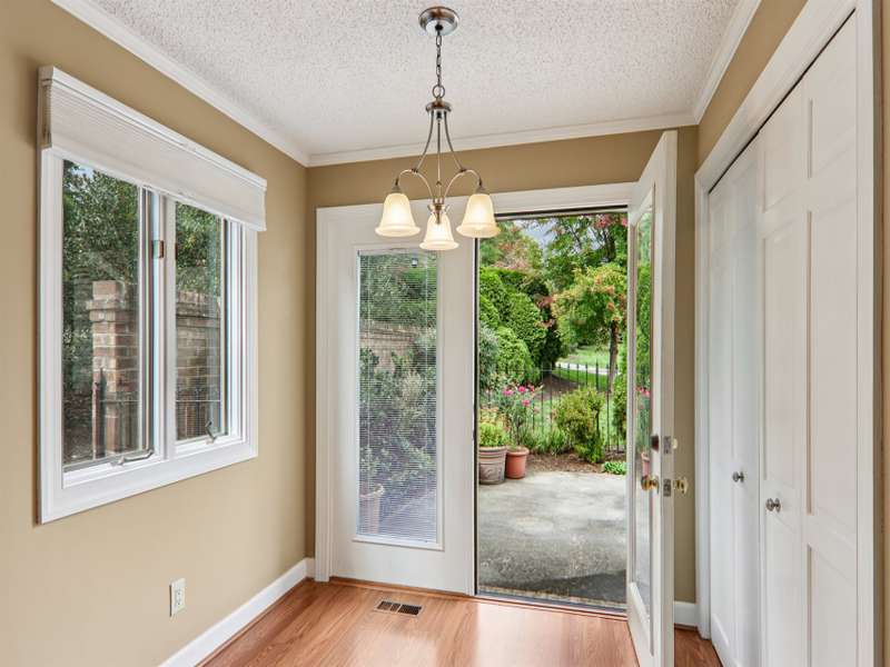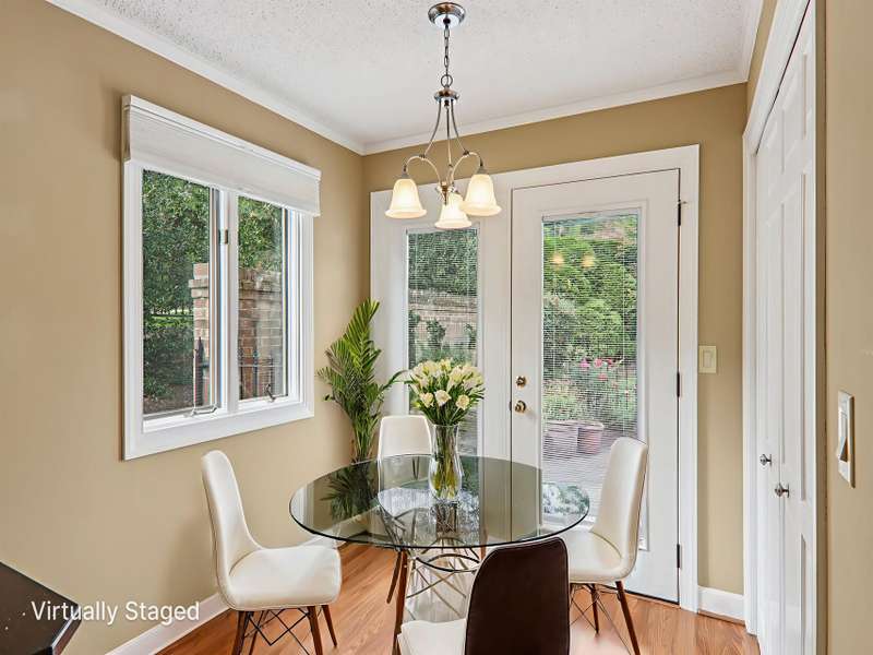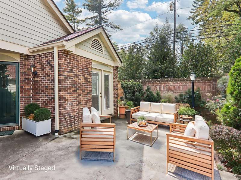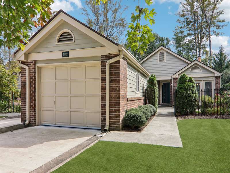 Discover maintenance-free living in this charming single-level townhome, ideally situated "in town" and only a few blocks to the Ecusta Trail, Main Street's vibrant shops and dining, grocery stores and medical care for added conveniences. The property has a beautiful entry courtyard featuring a wrought iron gate, privacy brick wall, and your own personalized landscaping. Inside, the kitchen boasts sparkling countertops, maple wood cabinets, and stainless-steel appliances, perfect for both everyday meals and entertaining. Choose between a cozy breakfast nook or a formal dining area for your gatherings. Relax in the inviting living room complete with a gas log fireplace, or soak up natural light in the bright three-season sunroom. The spacious primary suite includes a beautifully updated bathroom, while a guest suite and a bonus room or office offer flexible living options. A detached garage with a workbench provides additional storage and workspace. Located in the private townhome community of Glenbrook where residents enjoy access to a scenic greenspace park and a tranquil private pond. This home combines comfort, style, and convenience in one of the Hendersonville's most desirable locations. Schedule your tour today!