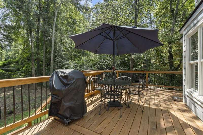 Charming, meticulously maintained home in sought after Heritage Farms Swim & Tennis Neighborhood in East Cobb! This home boasts high quality finishes, new roof, newer windows, new deck, and beautiful landscaping. Nestled on a tree lined, quiet street, you'll find the primary suite on the main with updated bath. Beautiful kitchen open to private backyard with brand new deck overlooking flat backyard perfect for morning coffee. Two secondary bedrooms up with shared bath. Finished basement with extra space perfect for office and two car garage. Plenty of storage and living space for comfortable living. Enjoy the inviting southern front porch and live your best life here!
