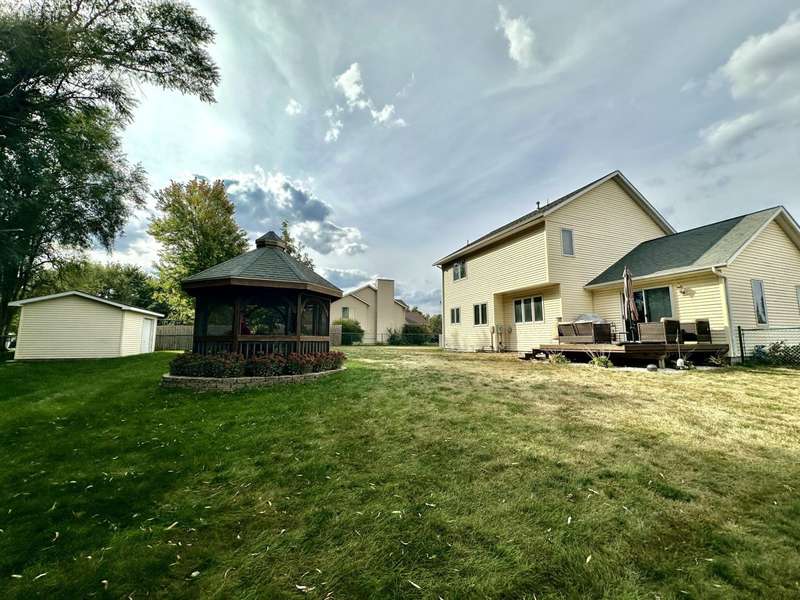 This home is currently listed as a delayed showing. Under no circumstances will any showings be allowed until 10/08/25 at 9 am The Sellers will not accept any proposed purchase agreements/offers earlier than 10/10/25 at 9pm. Well-kept 3 bedroom, 3 bath home offering over 2,300 sq. ft. of finished living space on a corner lot across from a park. Main level features a large living area with access to the deck, formal dining room, and kitchen with all new stainless steel appliances plus main-floor laundry. Upstairs includes a master suite with 3/4 bath and his-and-her closets. Finished basement offers a rec room with wet bar, and bonus room near egress window. Fenced yard with screened gazebo and large, well-built shed. New HVAC system. Don't miss this gem.