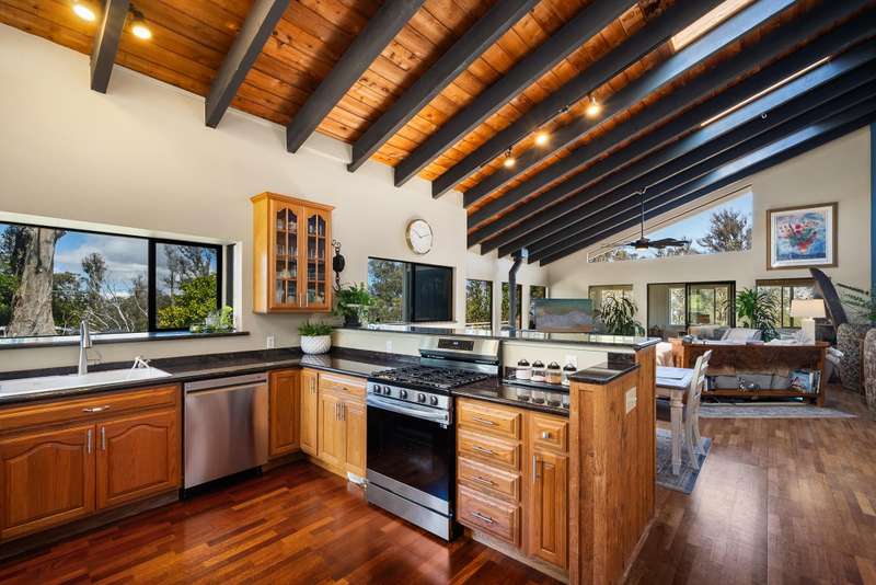 Private Forest Retreat on 2.13 Acres Bordering the majestic Makawao Forest Reserve and set above a peaceful gulch, this exceptional Upcountry estate offers the perfect blend of privacy, flexibility, and natural beauty. Located in the highly desirable Pi?iholo area—known for its crisp air, lush landscape, and serene forest setting—this fully fenced property sits at the end of a quiet cul-de-sac, just 12 minutes from historic Makawao town. The main home spans 3,264 sq ft with 5 BD and 4 full BA, featuring vaulted ceilings, elegant Marbau wood floors, travertine bathrooms, and in-floor central heating—ideal for cooler Upcountry mornings. Designed with openness and warmth in mind, the floor plan lends itself to relaxed living and entertaining. On the opposite end of the property, the detached Ohana offers 1,232 sq ft of comfortable living space with 3 BD, 2 BA, extended lanai space and a sizable 560 sq ft garage —perfect for extended family, long-term rental, or visiting guests. Additional amenities include a one-car garage with a connected exercise room and art studio, and a charming tiny home with a full kitchen and expansive lanai—ideal for a caretaker, guest hideaway, or creative retreat. The gently sloped acreage is dotted with mature fruit trees—including avocado, apple, grapefruit, orange, lemon, and peach—and surrounded by the tranquil sights and sounds of nature. Wake to the chirping of forest birds and savor the peaceful energy of Pi'iholo’s higher elevation. Whether you're looking for a multigenerational compound, income-generating property, or a private sanctuary immersed in nature, this one-of-a-kind retreat delivers Upcountry living at its best.