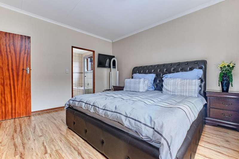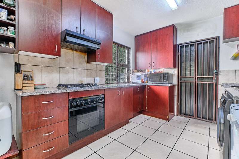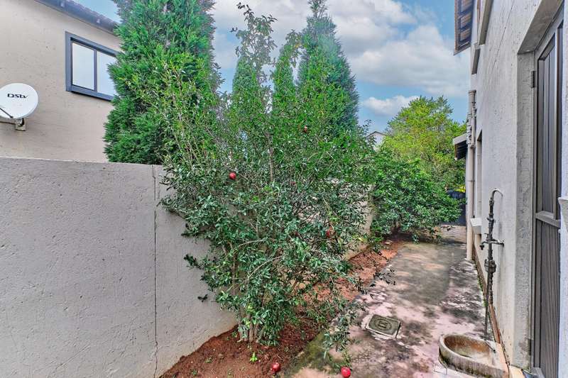 Step into style and comfort with this beautifully designed double-storey home offering 3 generously sized bedrooms and 2.5 bathrooms. The main bedroom features an en-suite bathroom all bedrooms include built-in wardrobes for ample storage. Enjoy effortless entertaining in the open-plan kitchen, lounge, and dining area?Çöperfectly suited for modern family living. The fully fitted kitchen boasts wooden cupboards, granite countertops, and a scullery that can fit two appliances. Downstairs there guest bathroom. The second level of the home has 3 generously sized bedrooms and two full bathrooms. Outdoor living is just as impressive, ideal for relaxed weekends with family and friends. Safety and privacy are top priorities, with burglar bars, security gates, and a fully walled perimeter ensuring peace of mind. This home offers a perfect blend of space, security, and sophistication?Çöready for you to move in and make it your own. Call me for exclusive viewing