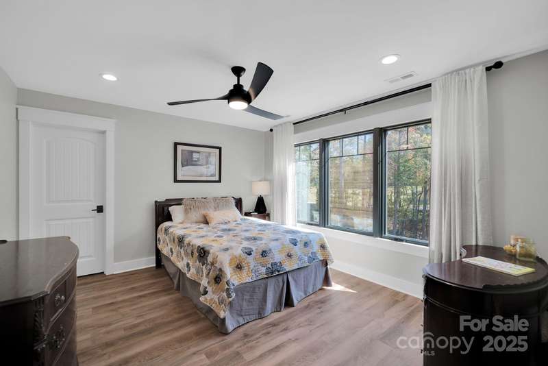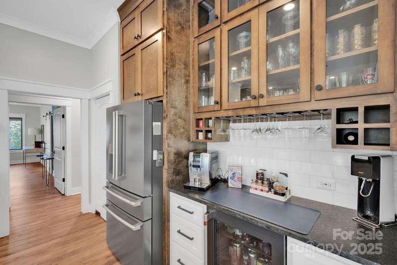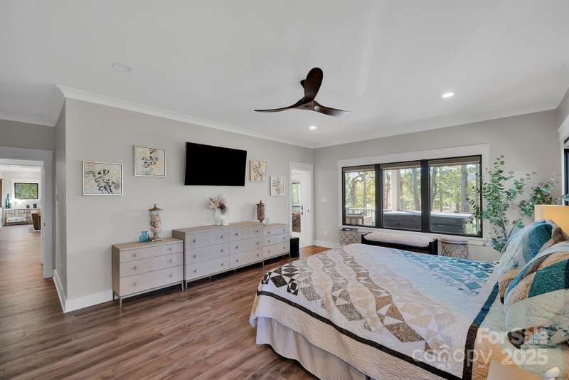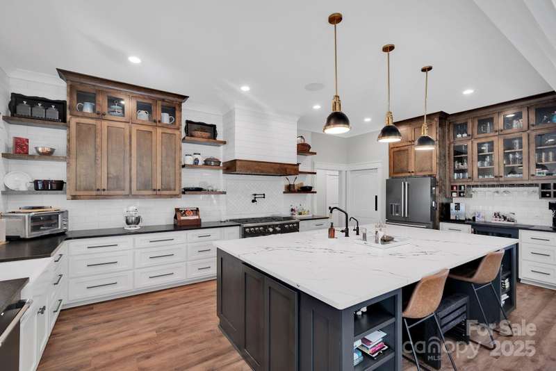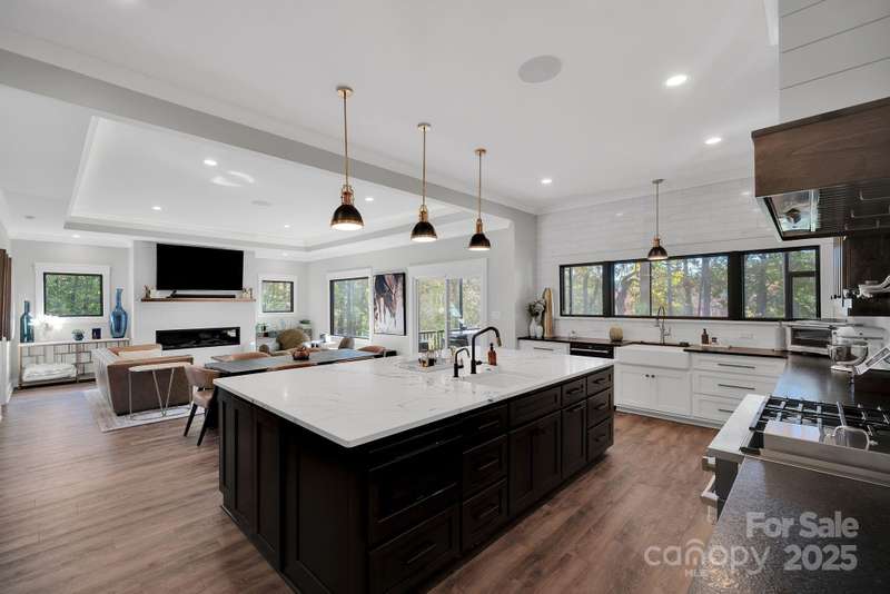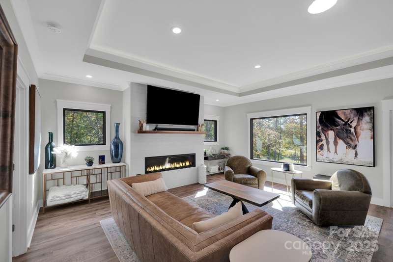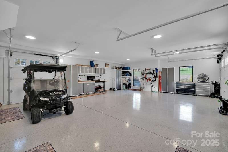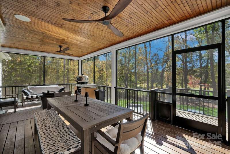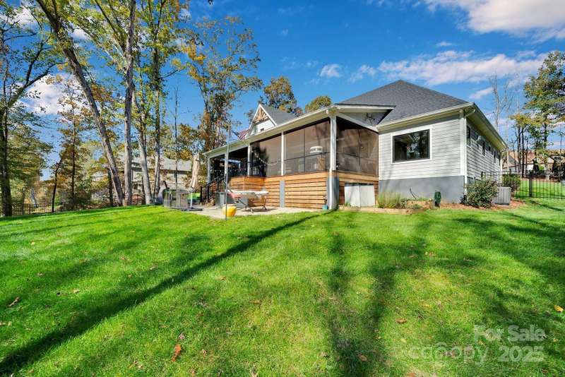A truly exceptional, custom-built home perfectly positioned on 1.23 acres overlooking the 13th and 14th fairways of the prestigious Jones Golf Course at Rock Barn. Completed in 2022, this home offers privacy and stunning sunset and water feature vistas; a rare offering within this sought-after community. The open-concept main level features 10 ft ceilings, custom trim and wainscoting, crown coping, and casement picture windows framing the beautiful golf course views. The chef's kitchen is a showpiece, boasting a 48" dual-fuel range with commercial-grade hood, Cafe appliances with beverage center, marble backsplash to the ceiling, oversized quartz island with prep sink, instant hot water, glass rinser, pot filler, and custom solid maple cabinetry with built-in mixer lift, open shelving, and under cabinet lighting. A walk-through pantry with hidden Murphy door adds both charm and practicality. The primary suite is a private retreat featuring an exquisite spa-style wet room with curbless marble shower (dual heads + rain shower) and soaking tub enclosed in marble, along with a custom-built closet system and direct access to the laundry room for convenience. All bathrooms feature designer tile, high-end fixtures, and retractable sink heads. Outdoor living is at its best here. Enjoy a screened porch with retractable panels for an unobstructed view, a saltwater hot tub, and a fully equipped outdoor kitchen with sink, refrigerator, and countertop. Step down to a paver patio with a Pyro fire pyramid and under-deck storage space. Even more, the yard includes full irrigation, landscape lighting, and a fenced backyard. Additional highlights include an encapsulated crawl space, whole-house water filtration system, tankless gas recirculating water heater, and Generac generator with a dedicated panel for backup power. Three HVAC zones ensure year-round comfort. LP SmartSide siding, a stone mailbox, and flemished double front doors add timeless curb appeal. The oversized garage is designed for convenience with epoxy flooring, insulated doors, side-mount quiet lifts, a utility sink, hot/cold water spigot, and storage shelving. A separate golf cart bay and EV prewire offer flexibility for modern living. Every space has been maximized with thoughtful design; from oversized bedrooms with ample closets to a vaulted foyer with tongue-and-groove bead board ceiling. Even practical details have been elevated, like the central vacuum system with in-wall retractable hoses, and step lighting on the staircase. Become a member of the Rock Barn Country Club and enjoy access to world-class amenities including championship golf courses, a luxurious spa (do not need to be a member to access spa), fitness center, fine dining, and more; all within a peaceful, beautifully maintained setting. Experience the best of Rock Barn living and call 4111 Ridge Rd. NE your new home!