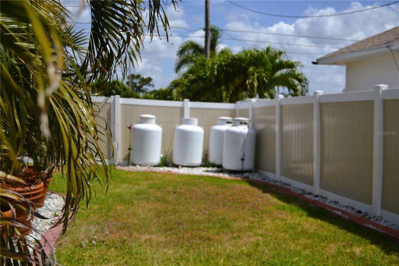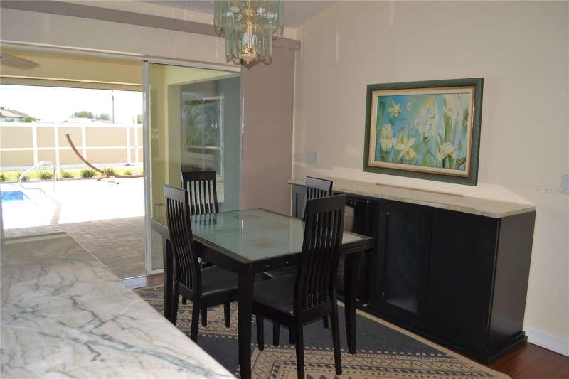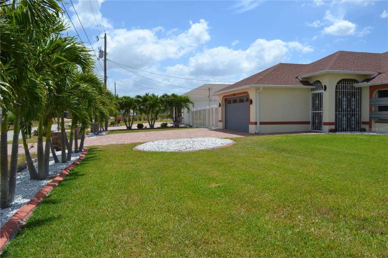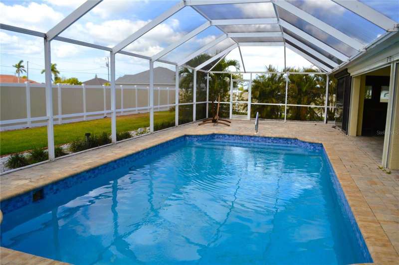 Discover the perfect blend of elegance and comfort in this stunning single-family home. Boasting 3 spacious bedrooms, 2 bathrooms, and a 2-car garage, this property is designed to meet all your family's needs. Step outside to your private paradise featuring an in-ground heated pool and a custom outdoor kitchen, perfect for relaxing or entertaining. Inside, craftsmanship shines with granite countertops, stainless steel appliances, custom built-in cabinets, and even a Murphy bed in the second bedroom. The wood flooring adds warmth and sophistication, while the wine cooler ensures you're always ready to celebrate. Set on a double lot, this home offers lush landscaping, including highly coveted triple palms (12), creating a picturesque tropical ambiance. There's also a shed for extra storage and ample space for outdoor activities or potential expansion. An additional building attached to the lanai provides versatile options it can serve as a den, fitness room, guest suite, or whatever suits your lifestyle. Safety and peace of mind are paramount, thanks to Kevlar roll-down hurricane screens in the lanai, propane tanks, a whole-house Generac generator, and an RO system. Whether you're hosting, working, or simply unwinding by the pool, this property truly has it all. Don't miss the chance to make this exceptional home your forever retreat!