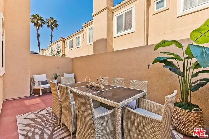 Welcome to this stunning Contemporary Mediterranean style home in the highly desirable city of El Segundo! This bright and freshly painted end-unit townhouse features 3 bedrooms and 2.5 bathrooms, offering the perfect blend of comfort, convenience, and modern style. As you walk down the beautifully manicured path to the front door, you'll be greeted by lush greenery that sets a serene tone. Step inside to find a spacious family room or office, complete with high ceilings, abundant windows, and a cozy fireplace a perfect space to unwind or work from home. Just a few steps up, the open-concept living, dining, and kitchen area awaits. The kitchen includes a charming breakfast nook and a convenient half bath. The living area boasts sliding glass doors that open to a large private patio ideal for morning coffee, entertaining guests, or simply relaxing outdoors. The third floor, newly carpeted for comfort, features three bedrooms, a full hallway bathroom, and a convenient laundry area. The primary suite includes its own fireplace, and an ensuite bathroom with dual sinks and a granite countertop, plus additional built-in closets. Additional highlights include nest thermostat, custom blinds throughout the home, two side-by-side parking spaces in a secure gated garage, and close proximity to top-rated schools, parks, shops, dining, and the beach. Enjoy easy access to major freeways and LAX, making commuting a breeze.Move-in ready and full of charm, this home combines contemporary living with an unbeatable El Segundo location. Don't miss the opportunity to make it yours! Rent includes trash, and water. Sorry, no pets.