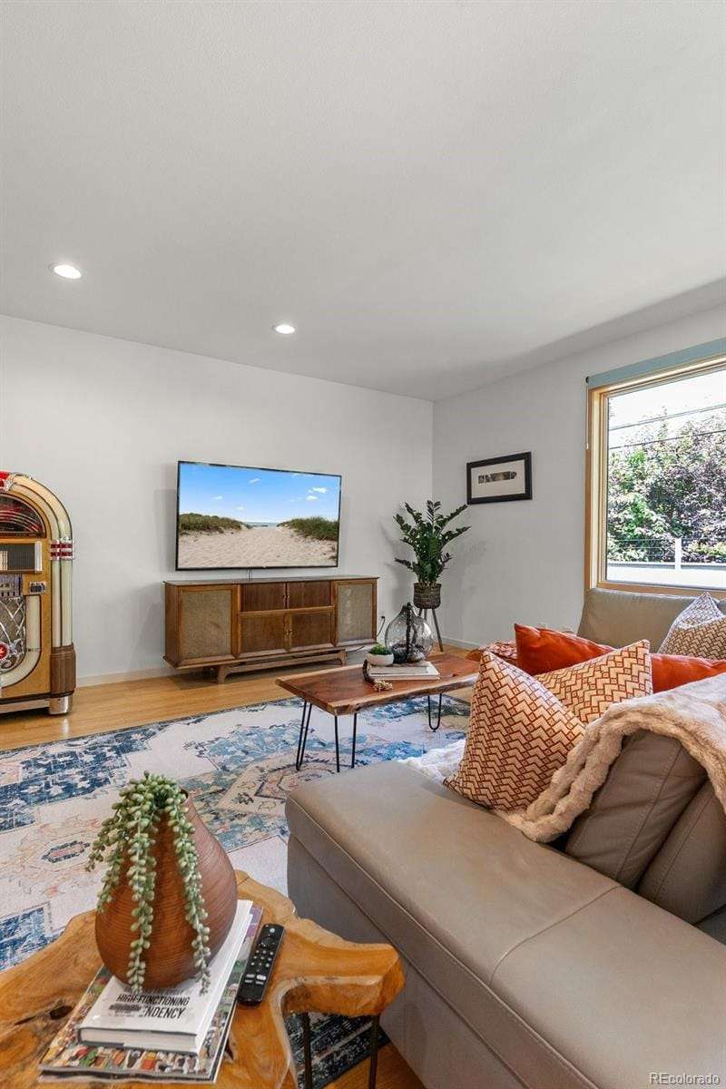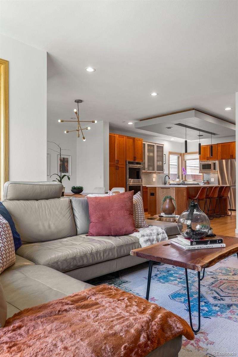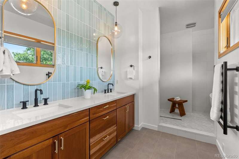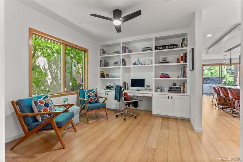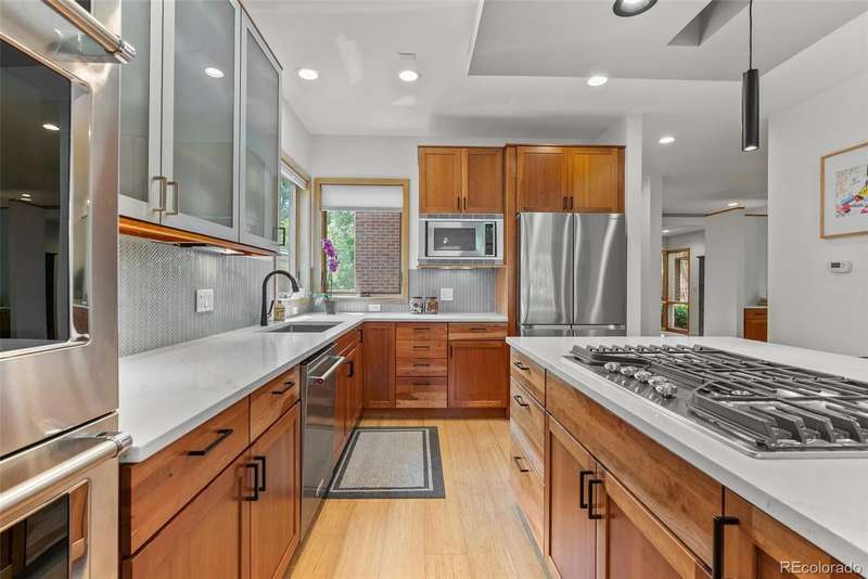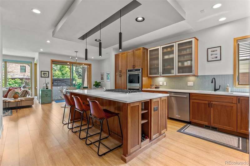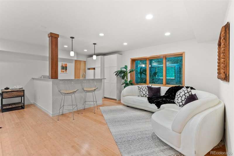 Tucked away in the heart of Hilltop, this beautifully updated residence offers the perfect blend of classic architecture and modern sophistication. Bathed in natural light and thoughtfully designed for both everyday living and elegant entertaining, every detail of this home reflects warmth, intention, and style. The main level welcomes you with thoughtfully designed ceiling heights, expansive windows, and newer bamboo flooring that flows throughout the open-concept living and dining spaces. A striking floating staircase serves as an architectural centerpiece, while the adjacent home office with custom built-ins offers a quiet place to focus or create. The kitchen has been tastefully updated with quartz countertops, a statement backsplash, solid cherry cabinetry, and double ovens which are equally suited for casual mornings or dinner with friends. Upstairs, the primary suite is a serene retreat, featuring two customized closets, a private west-facing balcony, and a fully renovated five-piece bath that feels like a page from a design magazine. Two additional spacious bedrooms and a second full bath complete the upper level. The finished lower level offers incredible flexibility with its own living area, bedroom, full bath, kitchenette, workout space, and private laundry hookupsan ideal solution for long-term guests, extended family, or an au pair. Outside, enjoy a recently landscaped backyard designed for both relaxation and connection. A newer high-efficiency HVAC system brings comfort and peace of mind, rounding out a truly turnkey home. Located just blocks from Cranmer Park and within the boundaries of Carson Elementary, this is a rare opportunity to own a thoughtfully renovated property in one of Denvers most beloved neighborhoodswhere tree-lined streets, timeless homes, and a true sense of community define the lifestyle.