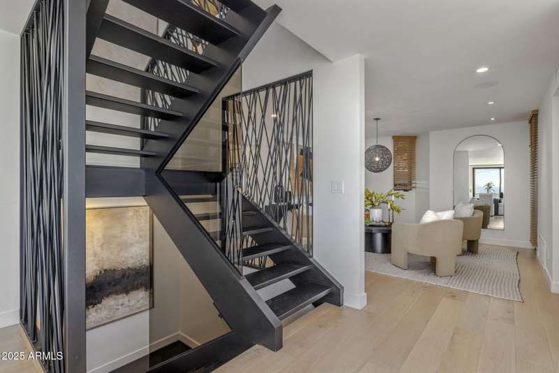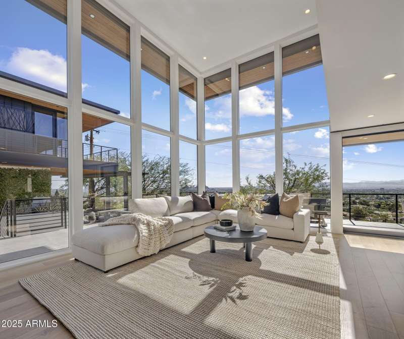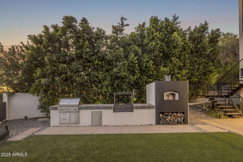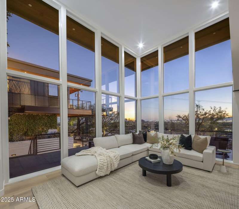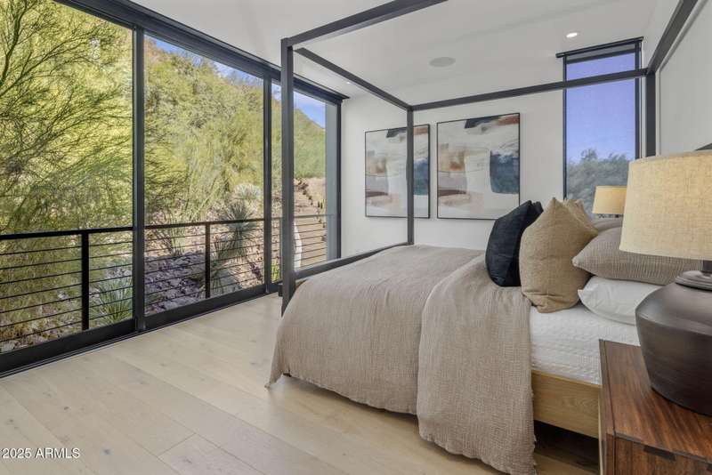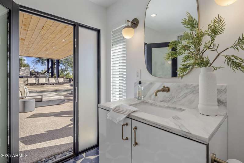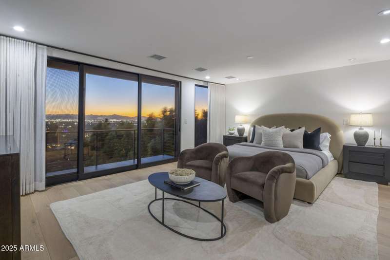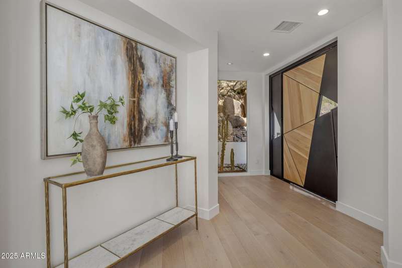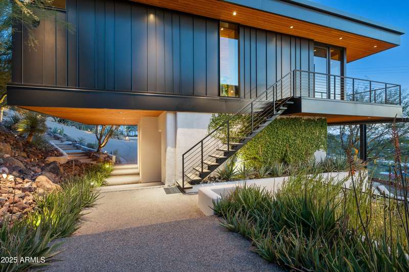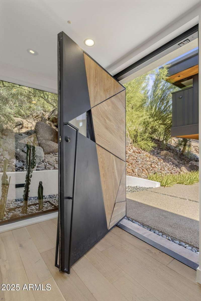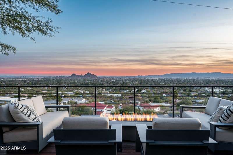 Luxury Arcadia Hillside Estate with Guest Casita! Perched atop Camelback Mountain overlooking prestigious Arcadia, this magazine-worthy estate was fully renovated in 2018, masterfully combining breathtaking views, natural elements, and luxurious finishes. Floor-to-ceiling windows flood the home with natural light and frame unrivaled sunrise and sunset views, creating an unparalleled living experience. The exterior of the home, landscape & hardscape were entirely renovated in 2019, and the additions of a stunning 1,242-square-foot guest casita in 2020 and pickleball court in 2024 arguably take this property to the next level. In the Main House, you will be welcomed by modern & mature desert landscaping, followed by a striking wood & steel entry door to set a tone of luxe tranquility.