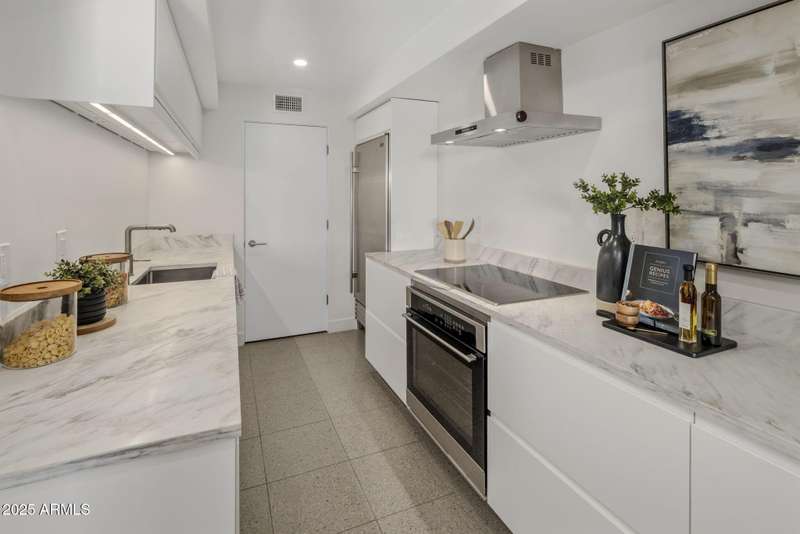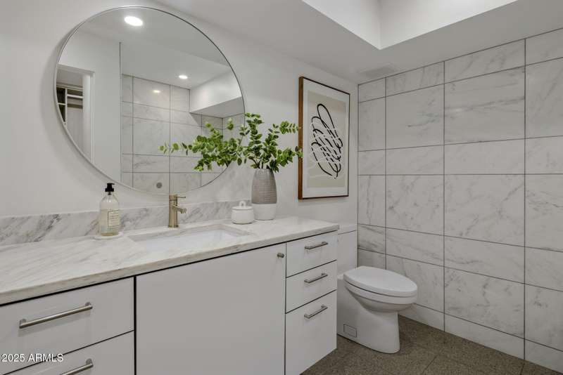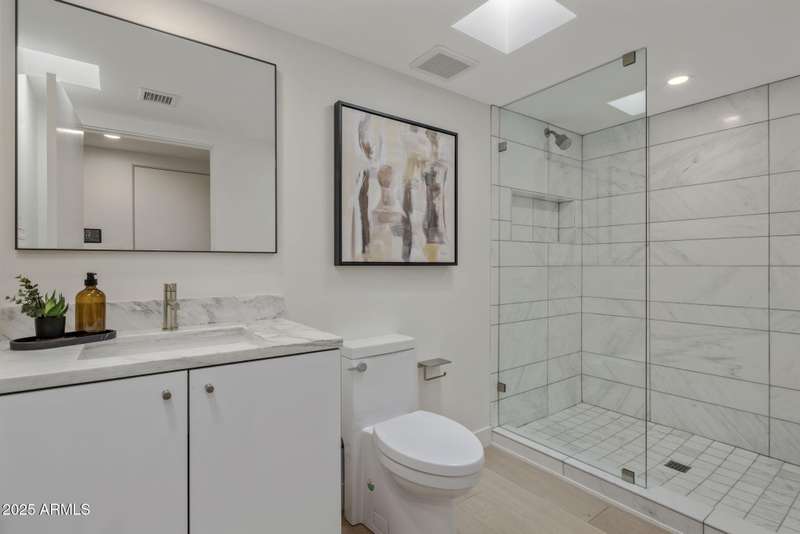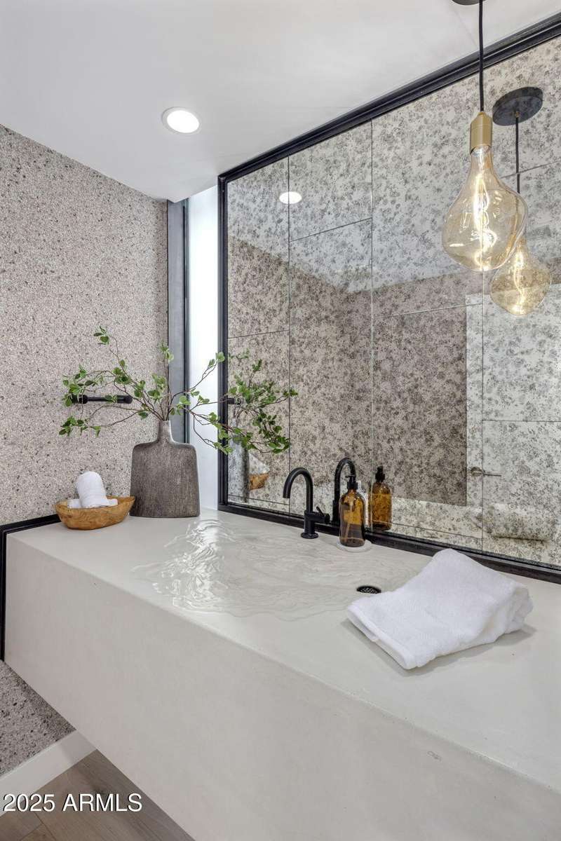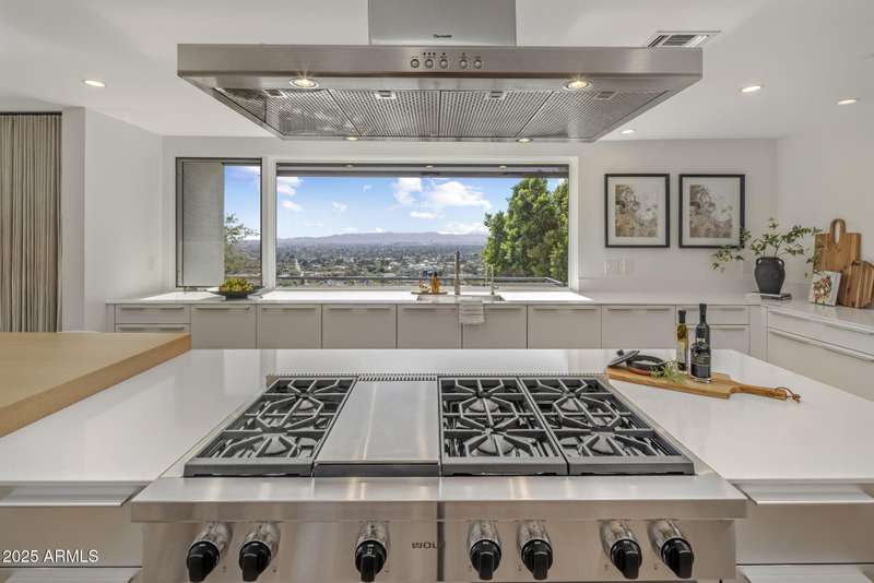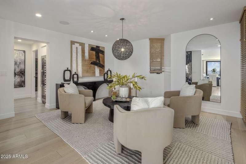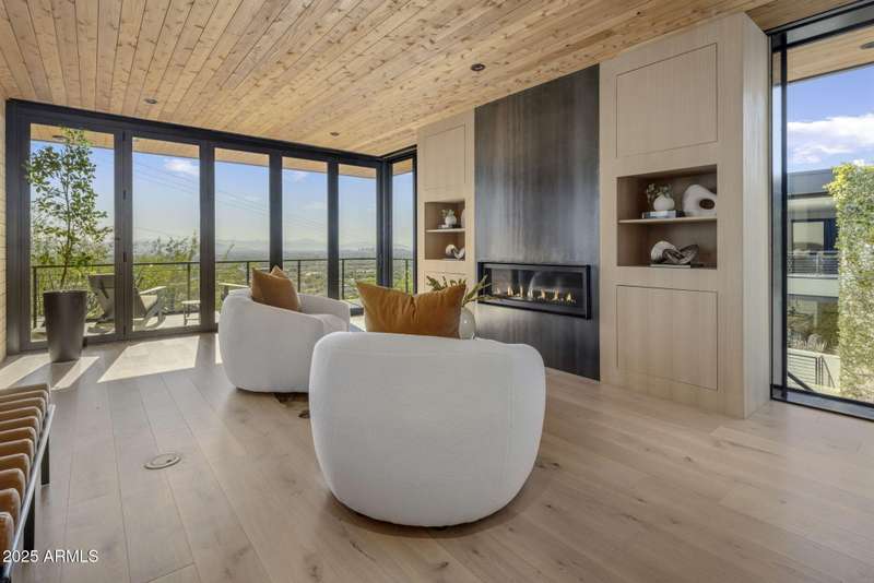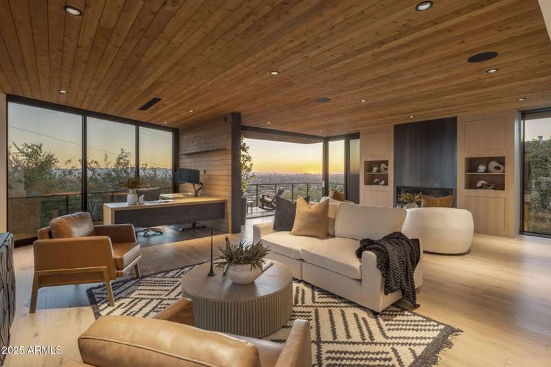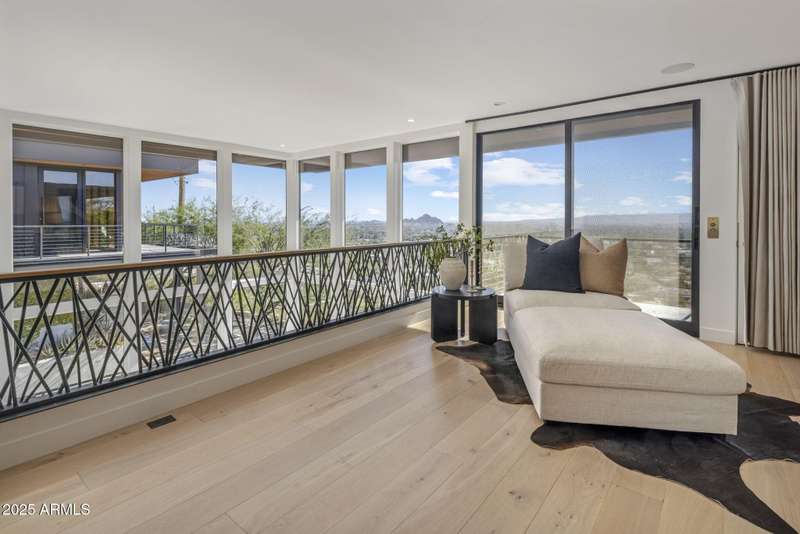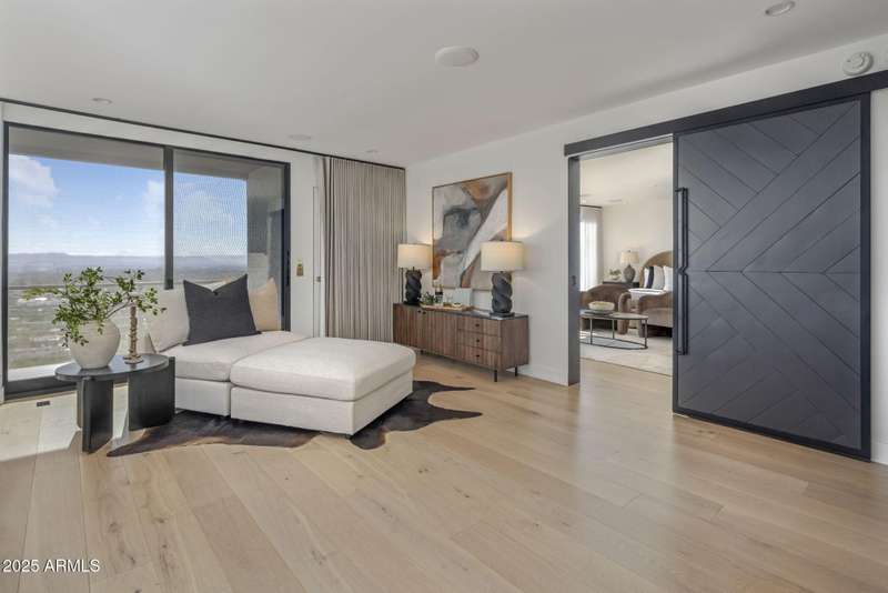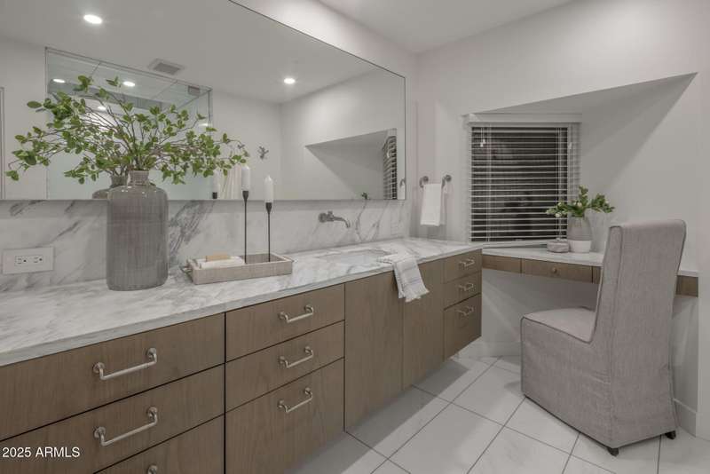 Luxury Arcadia Hillside Estate with Guest Casita! Perched atop Camelback Mountain overlooking prestigious Arcadia, this magazine-worthy estate was fully renovated in 2018, masterfully combining breathtaking views, natural elements, and luxurious finishes. Floor-to-ceiling windows flood the home with natural light and frame unrivaled sunrise and sunset views, creating an unparalleled living experience. The exterior of the home, landscape & hardscape were entirely renovated in 2019, and the additions of a stunning 1,242-square-foot guest casita in 2020 and pickleball court in 2024 arguably take this property to the next level. In the Main House, you will be welcomed by modern & mature desert landscaping, followed by a striking wood & steel entry door to set a tone of luxe tranquility.