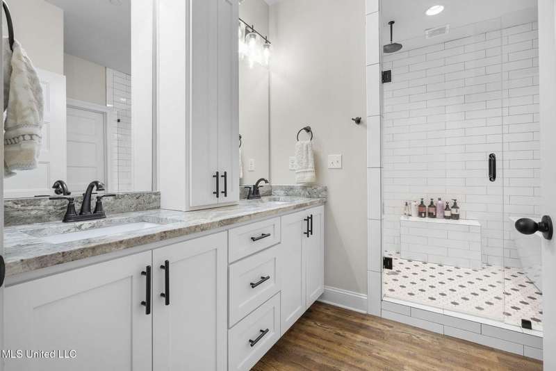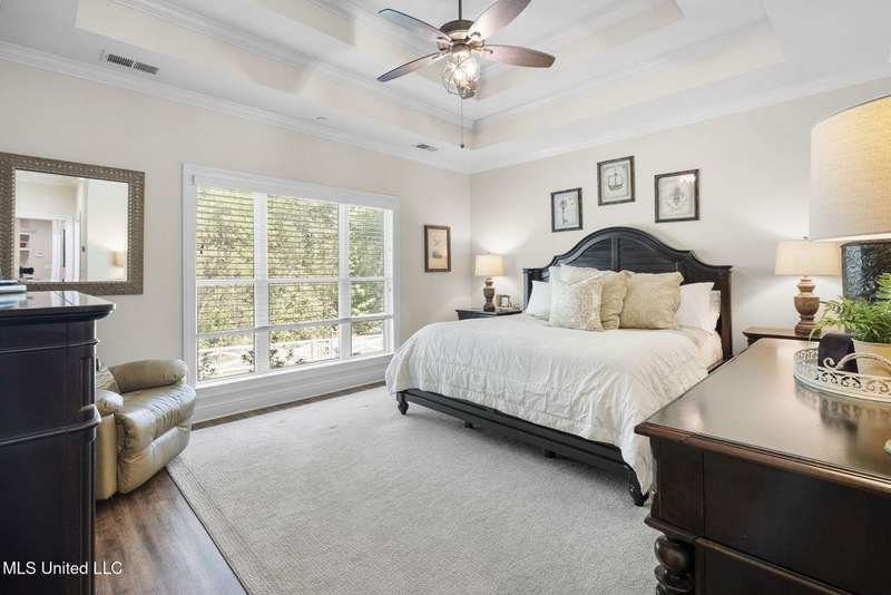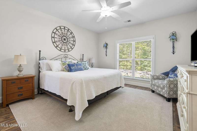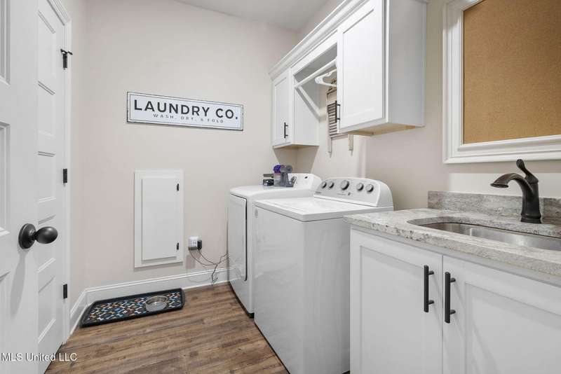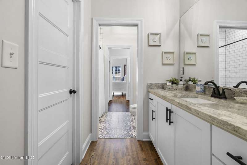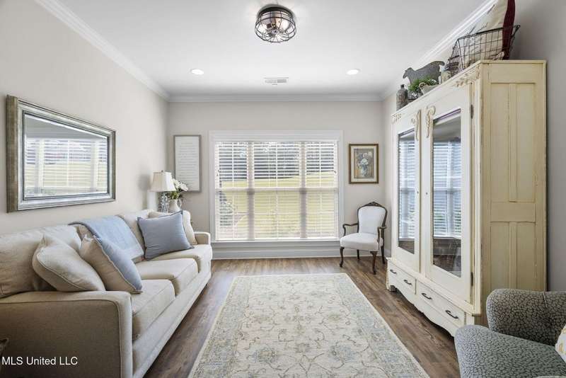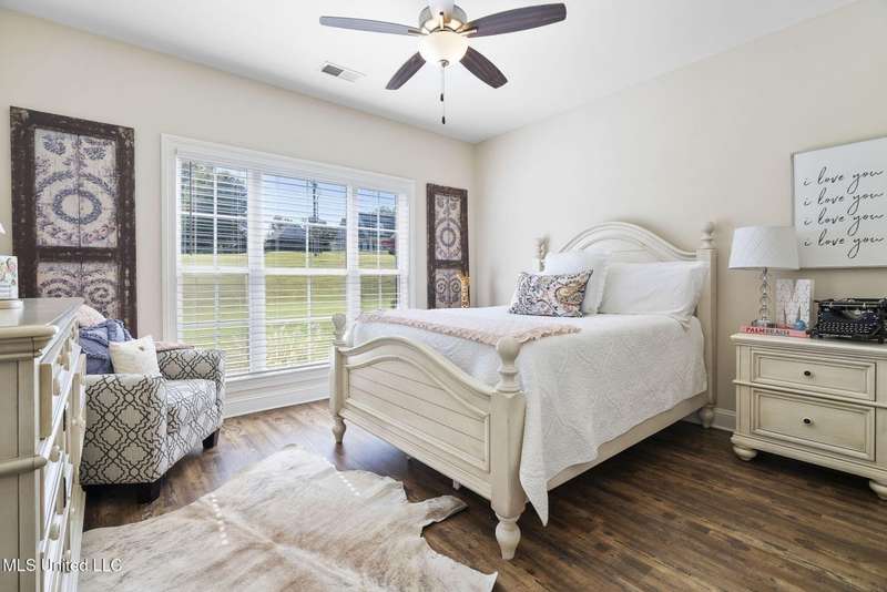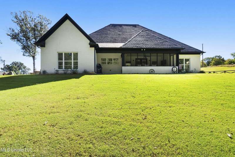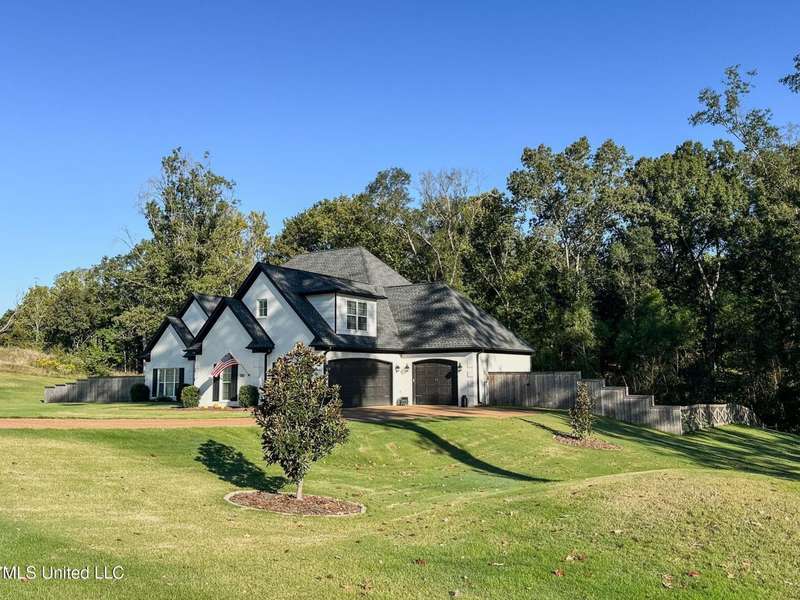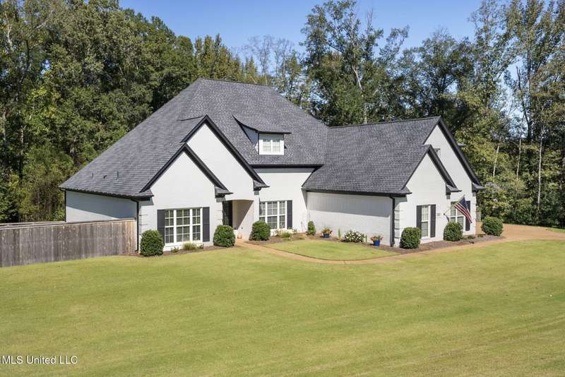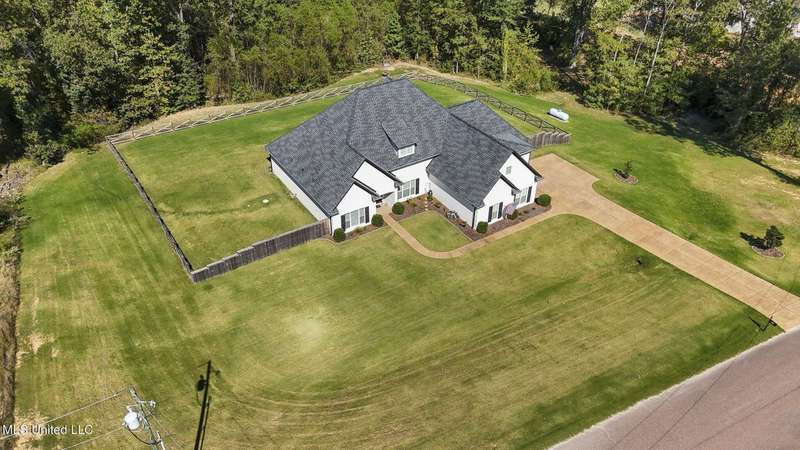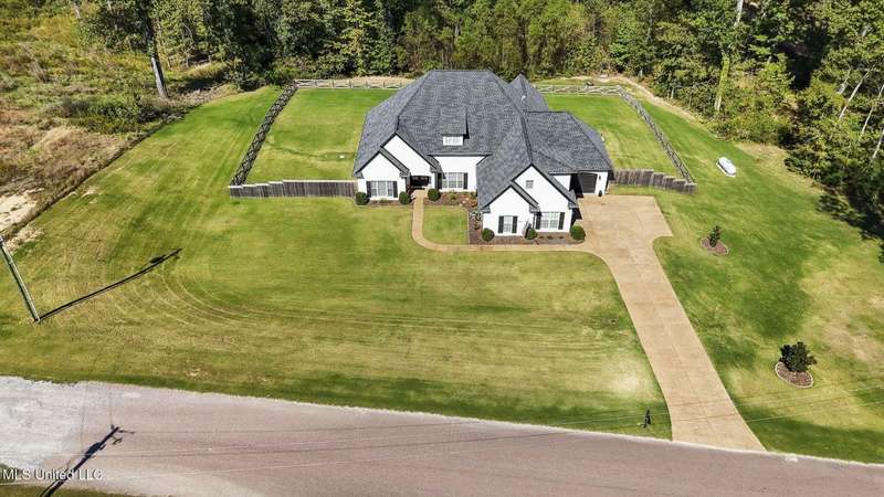 Corporate Move/Relocation. This is your chance to own a Southern Style Farmhouse custom-built home in desirable Love Station, located in Top Rated Hernando/Desoto County Schools. Impeccably designed and loaded with custom upgrades, this like-new home offers refined living on a beautiful 1.57 acre partially wooded lot. The double glass panel door entry opens to a grand foyer leading to an open-concept great room and kitchen. Straight ahead is the great room with a gas fireplace, built-ins on each side, component nook, 12-foot vaulted ceilings, and exposed beams. The open concept living room flows seamlessly to the kitchen and windowed breakfast nook which includes farm finish paneling. There is a separate office/dining room that features barn doors that can be closed for privacy or intimate gatherings. The chef's kitchen showcases leathered granite counters, a farmhouse sink with sensor faucet, pot filler over the 5-burner gas stove, double ovens, Frigidaire refrigerator, and beautiful tile backsplash. The custom cabinets feature under cabinet lighting and under cabinet outlets. They also sit off the floor for easy cleaning and maintenance. The decorative vent hood matches seamlessly with the cabinets The extra quiet Bosch dishwasher can be run during a party without disrupting your guests. An enormous walk-in butler's pantry features a reclaimed swing door with plenty of additional counter space, shelves, and cabinets. The entrance by the garage opens to a mudroom with custom built cubbies. The half bath and laundry room, which includes the washer and dryer, includes a sink and extra closet, are both close by. Down the hall, you will find the Primary Suite. The primary salon style bath has a large walk-in shower with the tub enclosed, a double vanity, and a huge walk-in closet with mirror and built-ins. The large windows in the primary bedroom showcase stunning views of the private backyard. The secondary bedrooms in this split floorplan are opposite the primary suite. They feature a Jack and Jill bath with substantial walk-in closets for each and a linen closet to share. All closets have upgraded wood shelving. Up the wood tread staircase is a finished bedroom with a 3/4 bath. In the bath is the closet for the bedroom and door to the expanded attic. The floored attic houses the smart home hub, tankless water heater, HVAC units, and plenty of bonus walk out storage. Double French doors in the living area open to the over 13 x 20 screened patio with a tv hookup and beautiful views of the fenced backyard. Off the patio is a pad large enough for your grill and smoker. The extended two car garage has an 8-foot opening, utility sink, and is fully insulated with an additional storage room attached. The third garage has its own door and is fully insulated as well. Each of the garage doors has its own keypad. There is a generator disconnect and hookup outside the garage. The lighting fixtures were hand selected for the home and will go seamlessly