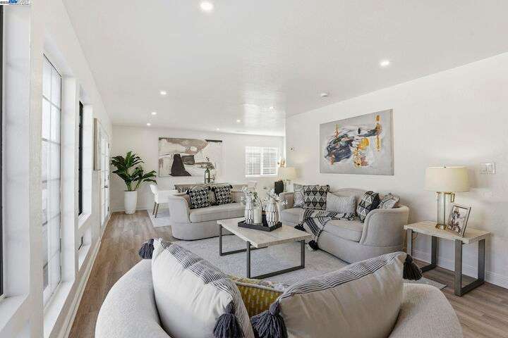 Charming single story 3 bedrooms, 2 baths home with a 2 car garage, ideally located near parks, Dublin High School, shopping, dining, Bart, and quick access to 580/680 freeways. Recent improvements include a new shingle roof, fresh interior and exterior paint, luxury vinyl flooring, and modern kitchen appliances and new pool motors. The hall bathroom has been remodeled. The primary bedroom bathroom has been enhanced with regrouted shower tiles, a new vanity, cabinet, toilet, window and a sleek sliding glass shower door. The primary bedroom also offers direct access to the side yard and pool area, perfect for morning coffee or a refreshing dip. A move in ready home offering comfort, convenience, and lifestyle..