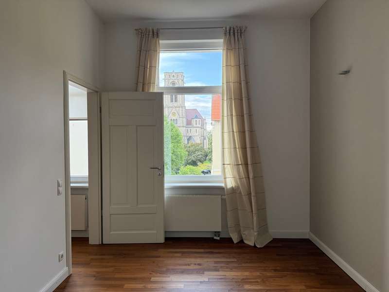 Welcome to your new home! This beautiful, modernized apartment in an old building combines the charm of bygone times with contemporary comfort. The high-quality and modern furnishings run through all the rooms of this unique property, where you can move in and feel at home. The apartment is located on the 2nd floor of a well-kept apartment building in the popular Östliches Ringgebiet. The building has been continuously renovated in recent years and is in a very well-kept condition. The surrounding area impresses with its pleasant neighborhood and good infrastructure. The living space of approx. 96 m² is divided into three spacious rooms, which can be used individually as bedrooms, studies or guest rooms. The open kitchen has a modern design and invites you to cook and linger together. The timeless bathroom is equipped with a bathtub and a walk-in shower. A spacious hallway has plenty of room thanks to the generous built-in wardrobe. The covered balcony is the ideal place to enjoy the fresh air and end the day when the weather is nice. A special feature of this apartment is the unique view of the St. Pauli church from every room. This unique panorama creates an atmospheric ambience. The freshly renovated basement room extends the usable area and offers ample storage space.