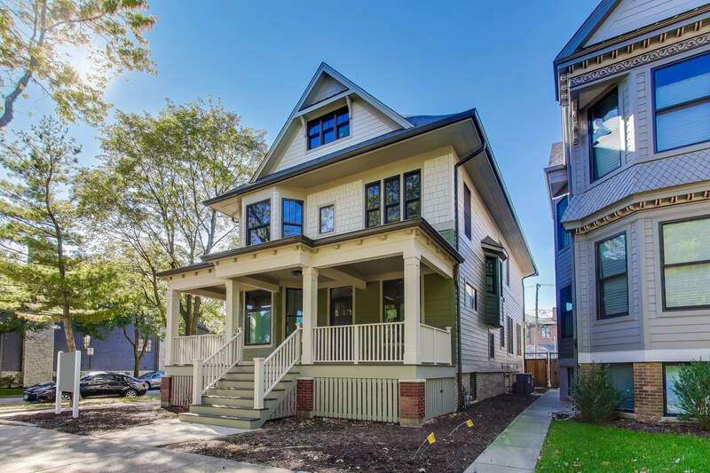 If you're bored and uninspired by the same house/different block/bland new construction, we will rock your world! On a 41'x124' corner lot with nearly 6,000sf, Bloom Properties has meticulously restored and creatively transformed this circa 1905, 3-story North Center home. In Bell Elementary and steps to St. Ben's. Every element of the home is custom. The show-stopping exterior design in sage, cobblestone and taupe includes a wide, deep front porch overlooking the beautiful tree-lined streets. Enormous landscaped front/side and rear yards are sprinkler-ready and will include a custom alfresco kitchen under a cedar pergola. Oversized EV ready garage is 1-1/2 stories with walk-up to enormous storage. Inside, every room is filled with light and joy. Luxuriously custom stained red oak floors paired with a Farrow & Ball paint palette create serene space. The custom staircase winds gently to all 4 floors. Six of the seven bedrooms are up - 2 ensuite. The spectacular custom kitchen with Wolf/SubZero/Cove professional appliances, walk-in and butler's pantries, opens to a great room with floor to ceiling walnut and limestone fireplace. Custom tile work, millwork, 8-foot, 3-panel solid core doors with transoms and Baldwin Reserve hardware, plus custom built-ins and cabinetry, throughout. Restored art glass and imaginative reuse of the home's original features finish the rooms. Two laundry rooms - one with a dog spa! Heated floors at rear entrances, in every bathroom and of course the full lower level. No detail overlooked. Built by a dedicated team of exceptional craftsmen who take the project from start to finish. Only Bloom Properties takes the time and commits the resources to restore and reimagine Chicago's vintage and historic homes. * * * Some details, finishes still to be specified by builder. November delivery.