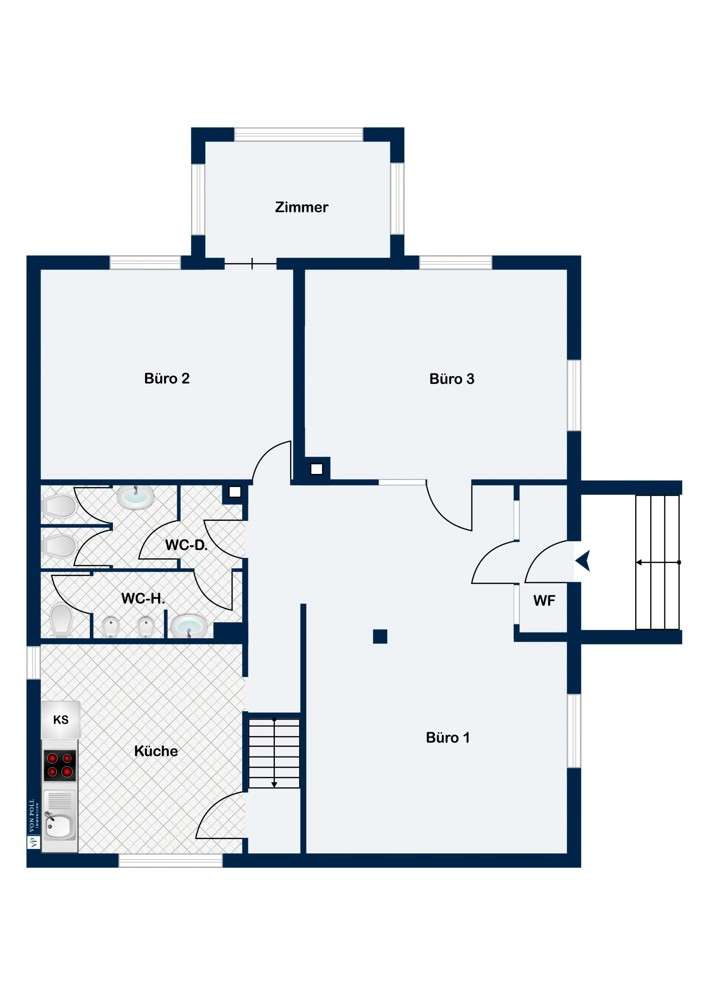 This property is a commercial unit with a total area of 119 m² for rent. It offers enough space for a small team to get through the working day. The building in which the office is located was built in 1931 and has always been renovated. Most recently, the old oil heating system was replaced with a heating combination consisting of an air heat pump and gas condensing boiler. Once in the office, you will find a spacious and light-flooded entrance area with access to all rooms and various options for free arrangement. Adjacent to the entrance area is an office room, which offers the necessary privacy through a glass door. There is also a third room at the rear of the office. All rooms have numerous sockets and LAN connections so that numerous workstations can be set up easily and conveniently. Take a break in the spacious kitchen. There is enough space here to set up a seating area or lounge. The building can be occupied from 01.06.2025. *** Click here for our 360° tour: https://von-poll.com/tour/weyhe/RepK ***