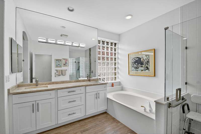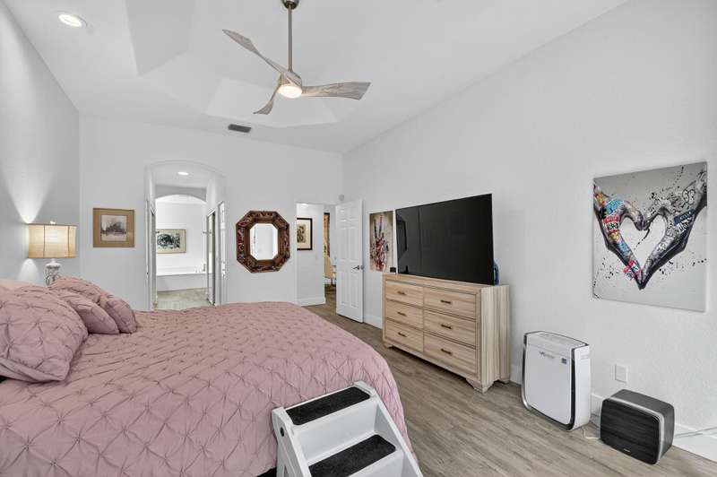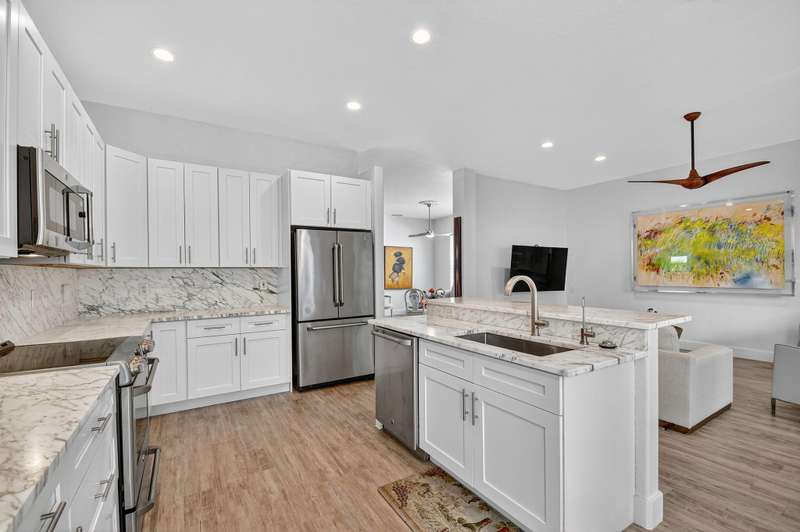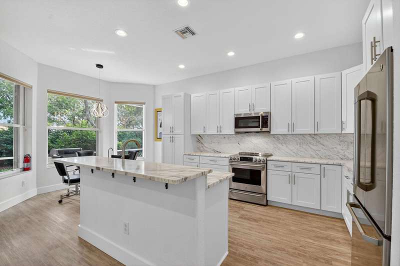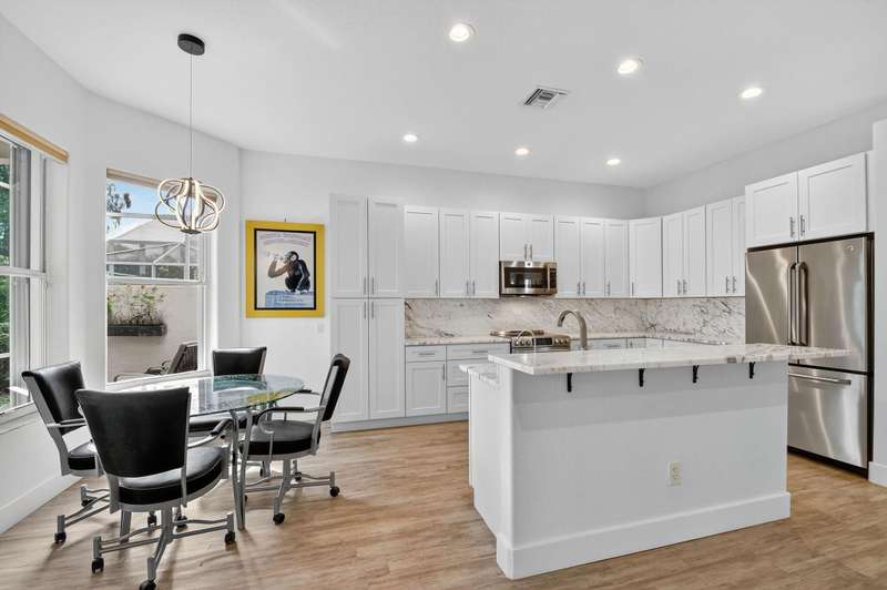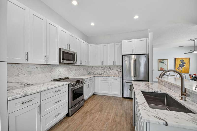 SELLER SPENT OVER $100,000 LAST YEAR UPDATING HOME. FULLY EQUIPPED W/ACCORDION HURRICANE SHUTTERS. HIGHLY DESIRED N/S EXPOSURE. STUNNING LUXURIOUS MEDITEREANEAN MODEL BOASTS 1 YEAR NEW KITCHEN, NEW LUXURY VINYL FLOORING THROUGHOUT, BATHROOMS UPDATED & THE WORKS! GOURMET LIGHT & BRIGHT CHEFS DELIGHT BOASTS MARBLE COUNTERS & FULL MARBLE BACKSPLASH, 42 INCH WHITE WOOD CABINETS, LAZY SUSAN, AUTO CLOSE, BUILT IN PANTRY, LARGE SS SINK W/NEW FAUCET, WATER FILTER INSTALLED 2025, HIGHLY UPGRADED SS GE ''OLD CAFE'' APPLIANCES & MORE. DESIGNER FANS & FIXTURES THROUGHOUT HOME. DON'T MISS THIS ONE, WONT LAST LONG.