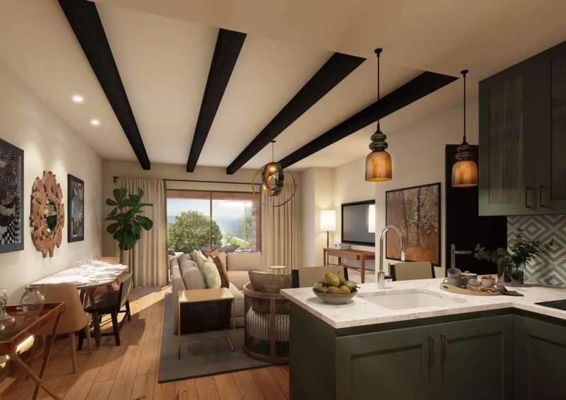Luxury 1-bedroom apartment in the Ombria tourist resort, for sale, Querença, Loulé, Algarve. Ombria has luxury apartments with 1 or 2 bedrooms, fully furnished and equipped, known as Viceroy Residences. The Viceroy Residences are an investment in a private home or for tourist exploitation with Viceroy's hotel management and services. This is an exclusive tourist resort, guaranteeing a high level of comfort, with facilities such as a golf course, spa and restaurant. Owners benefit from privileged access to the resort's facilities and a guaranteed rental return . The apartments have been designed by Winberly Interiors, integrating local natural materials. Apartment with large interior area, covered terrace, private pool and garden. Located in a natural and green area, just a few minutes from Loulé and less than 20 minutes from Faro International Airport. CHARACTERISTICS:Area: 107 m2 | 1 151 sq ft Useful area: 107 m2 | 1 151 sq ft Building Area: 123 m2 | 1 325 sq ft Bedrooms: 1 Bathrooms: 1 Energy efficiency: A FEATURES: Covered terrace Garden Swimming pool