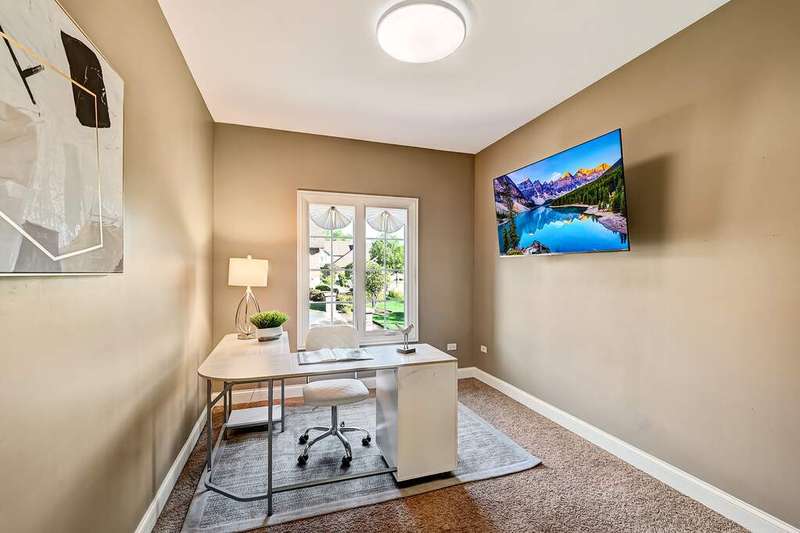 Welcome to the highly desirable Hawthorne Preserves community featuring an end unit luxury town home with sought after maintenance free amenities. This home is designed for modern living with room to grow. The gourmet kitchen features rich cherry cabinetry, sleek stainless-steel appliances, and plenty of counter space-ideal for cooking, hosting, and everyday living. The open-concept layout flows seamlessly in the inviting family room, complete with a cozy fireplace creating a warm and welcoming atmosphere. A convenient first-floor laundry room and office/bedroom adds to the home's functionality. Upstairs, you'll find a spacious primary suite with a walk-in closet, plus two additional bedrooms and a full bath. The finished basement offers endless possibilities, including a 5th bedroom, recreation area, fitness space or home office. And it's already plumbed and drywalled for a 3rd full bath. Located in a community where exterior maintenance is taken care of beginning with a new roof, you can spend more time enjoying your home and less time on upkeep. This quiet community is just minutes from great Lockport schools, parks and everyday amenities.