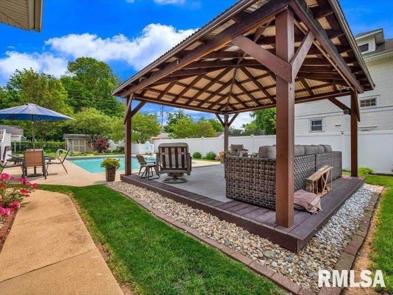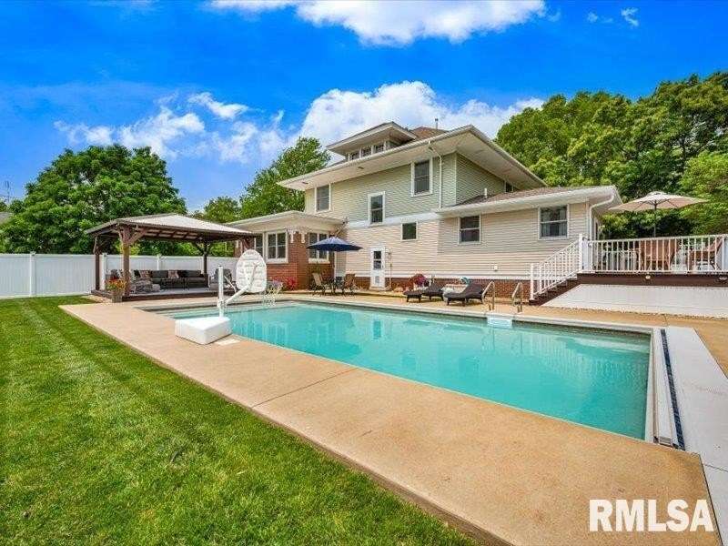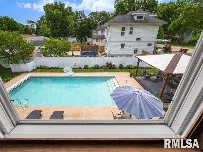 This home is worth the wait! Owners can close in January 2026 or when their new home is completed. Would also consider renting back as an option as well. Beautifully and tastefully updated, move in ready, 4BR/3BA 2-story home on a spacious double lot in the charming town of Henry, IL. Enter this home through the inviting covered front porch, saunter inside revealing tall and elegant ceilings with wood beams, crown molding, adorned by a stunning fireplaced living room. Natural light overflows into the sunroom overlooking the inground pool, while the formal dining room impresses with leaded glass windows, wainscot paneling, and a coffered ceiling. The remodeled kitchen features soft-close cabinetry, hard-surface counters, and newer appliances. All bathrooms are stylishly updated, including a 2nd floor bath with heated flooring. Main floor laundry or downstairs hook-up, replacement windows, and a Generac generator add efficiency and convenience. Outside, enjoy a resort-like oasis you will be thrilled to share with your Family and Friends. For starters, the outstanding Floral Landscaping is a sight to behold. Within this paradise you will see the beautiful maintenance-free deck, the 20 x 40 heated salt water in-ground pool with electric cover, a 16x16 elevated custom gazebo and all surrounded by the 6ft vinyl privacy fence. A 2-stall garage PLUS 2 Spacious Sheds to use however you choose is just the icing on the cake!. Truly not your typical vintage home—this one has it all!