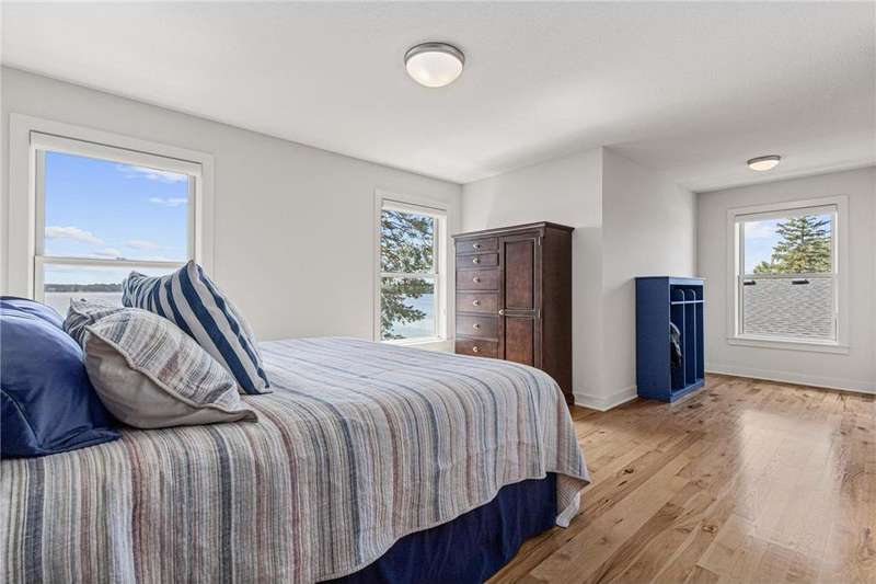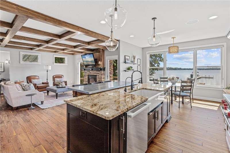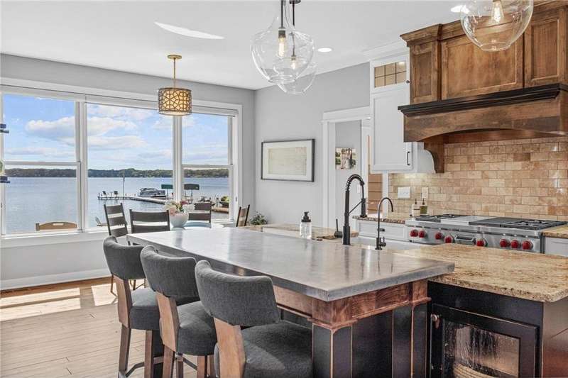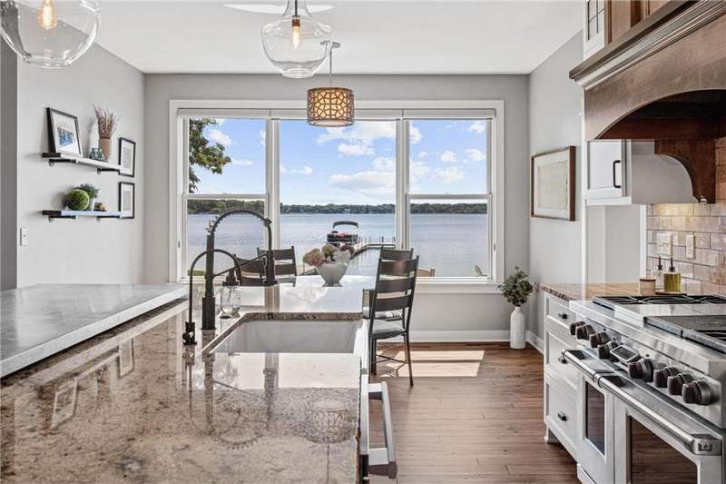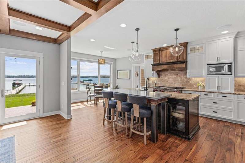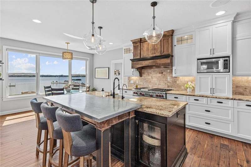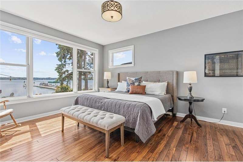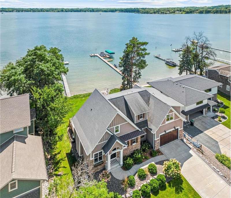 Spectacular 5BD/5BA home built by R&R Construction perfectly situated on 90' of the best lakeshore on Turtle Lake in the MV School District. From the striking curb appeal to the thoughtful interior, this home has it all; one-level living with hand-scraped walnut floors, a luxurious primary suite, main-level laundry, and a chef’s kitchen with high-end Wolf/Sub-Zero appliances, walk-in pantry, and multiple places to entertain family and friends. Upstairs boasts 4 generous bedrooms, 2 Jack-and-Jill baths, a laundry space plus an office. The lower level is an entertainer’s dream with a large bar, wine room, sauna, workout space, family room, and game area. Enjoy 90’ of pristine sugar-sand shoreline, a flat yard for lake games, and breathtaking views from nearly every room. The lake is calling... time to fish, boat, swim, skate and more.