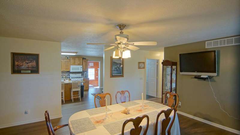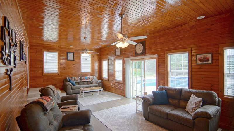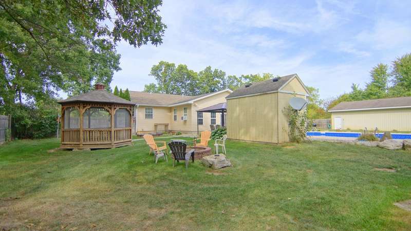 Escape to peaceful country living with this spacious ranch home on a quiet rural road. Featuring 4 large bedrooms, 3 full baths, and a sprawling open floor plan, this home is custom built for comfort and entertaining. The main level offers a generous kitchen, oversized dining and living room, plus a with patio doors leading to a sparkling inground pool. Durable luxury vinyl floors run throughout, and high ceilings enhance the open feel. The finished basement includes a family room, wet bar and extra living space. Outside, custom concrete surrounds the pool, while a large pole barn with concrete floors, furnace and abundant lightning provides endless uses. The alternative outdoor wood burning boiler heats the water, pool and barn adding efficiency and charm. Tucked away on a lightly traveled road, this property offers the perfect blend of privacy, space and amenities.